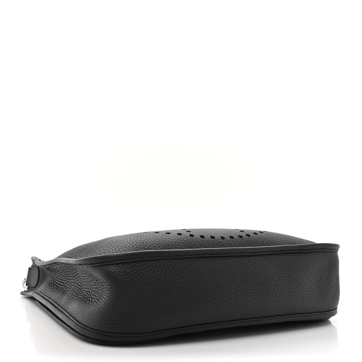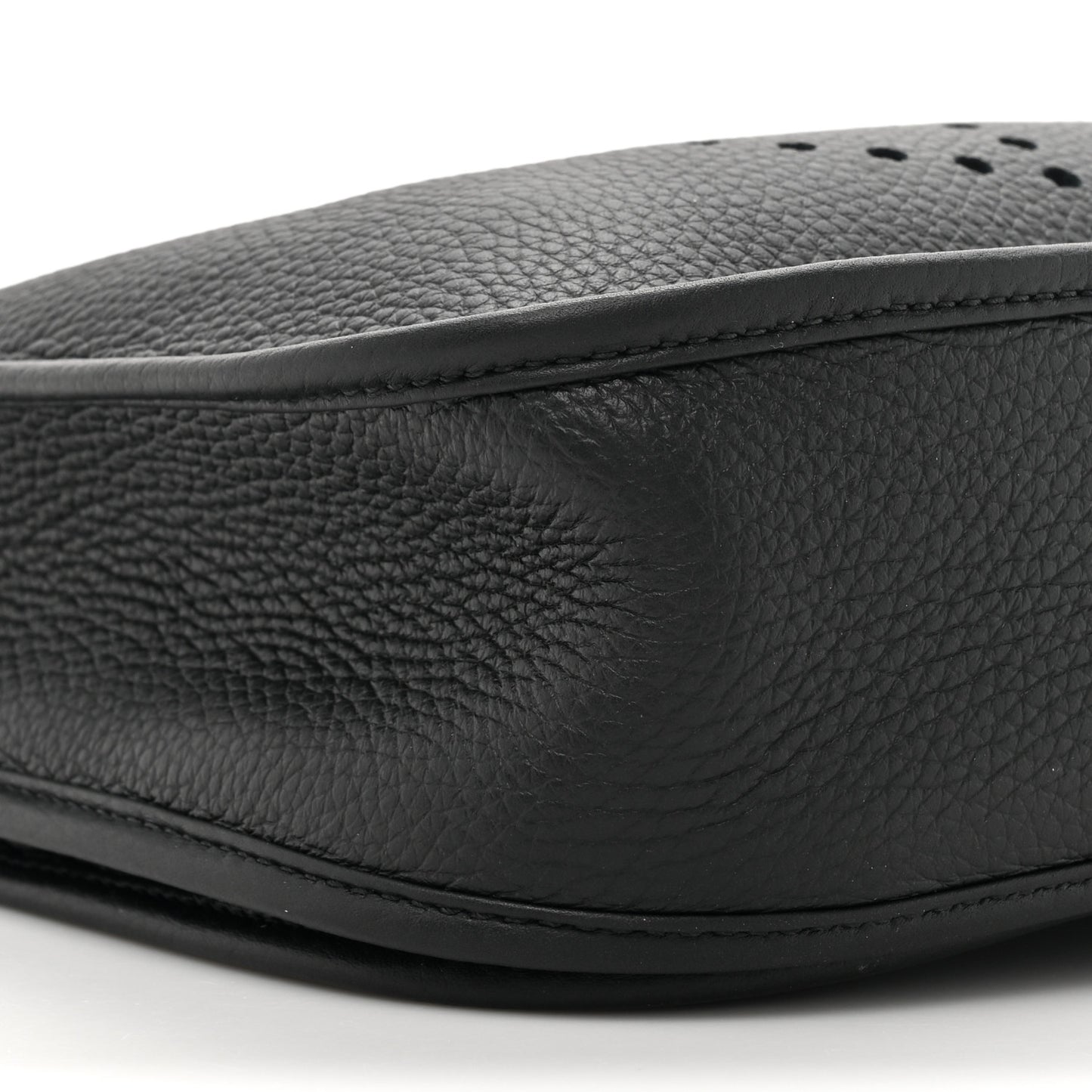 This is an authentic HERMES Taurillon Clemence Evelyne III PM in Bleu Nuit. This stylish crossbody bag is finely crafted of Clemence calfskin leather in dark blue. It features a fabric crossbody strap, a facing perforated Hermes H and palladium silver hardware including clasps for the shoulder strap. The top is open to a matching suede interior.Follow this item for alerts. Hermes is a registered trademark of Hermes. FASHIONPHILE is not affiliated with Hermes.