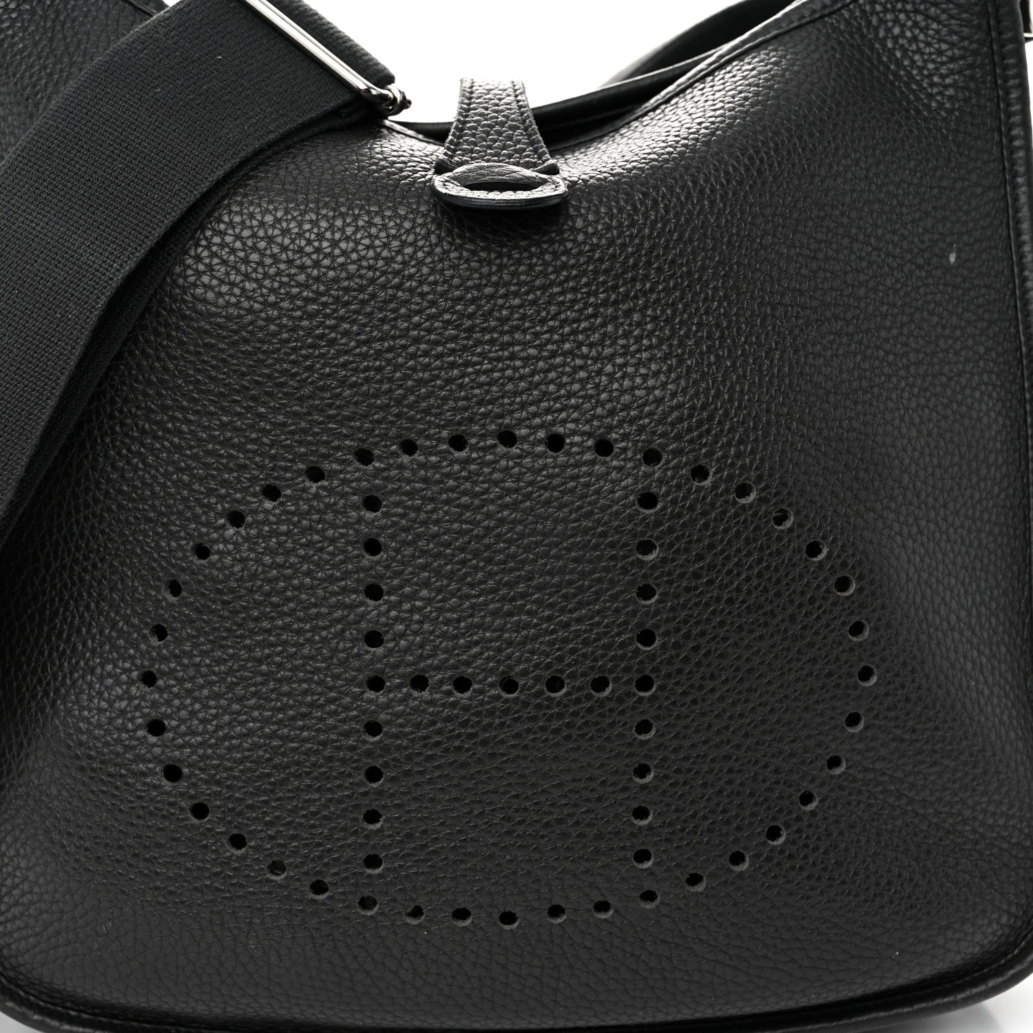 This is an authentic HERMES Taurillon Clemence Evelyne III PM in Graphite. This stylish cross body bag is finely crafted of clemence calfskin leather in deep grey. The bag features a canvas fabric cross body strap, a front perforated Hermes H and palladium hardware including clasps for the shoulder strap. The top is open to a matching suede interior.Follow this item for alerts. Hermes is a registered trademark of Hermes. FASHIONPHILE is not affiliated with Hermes.