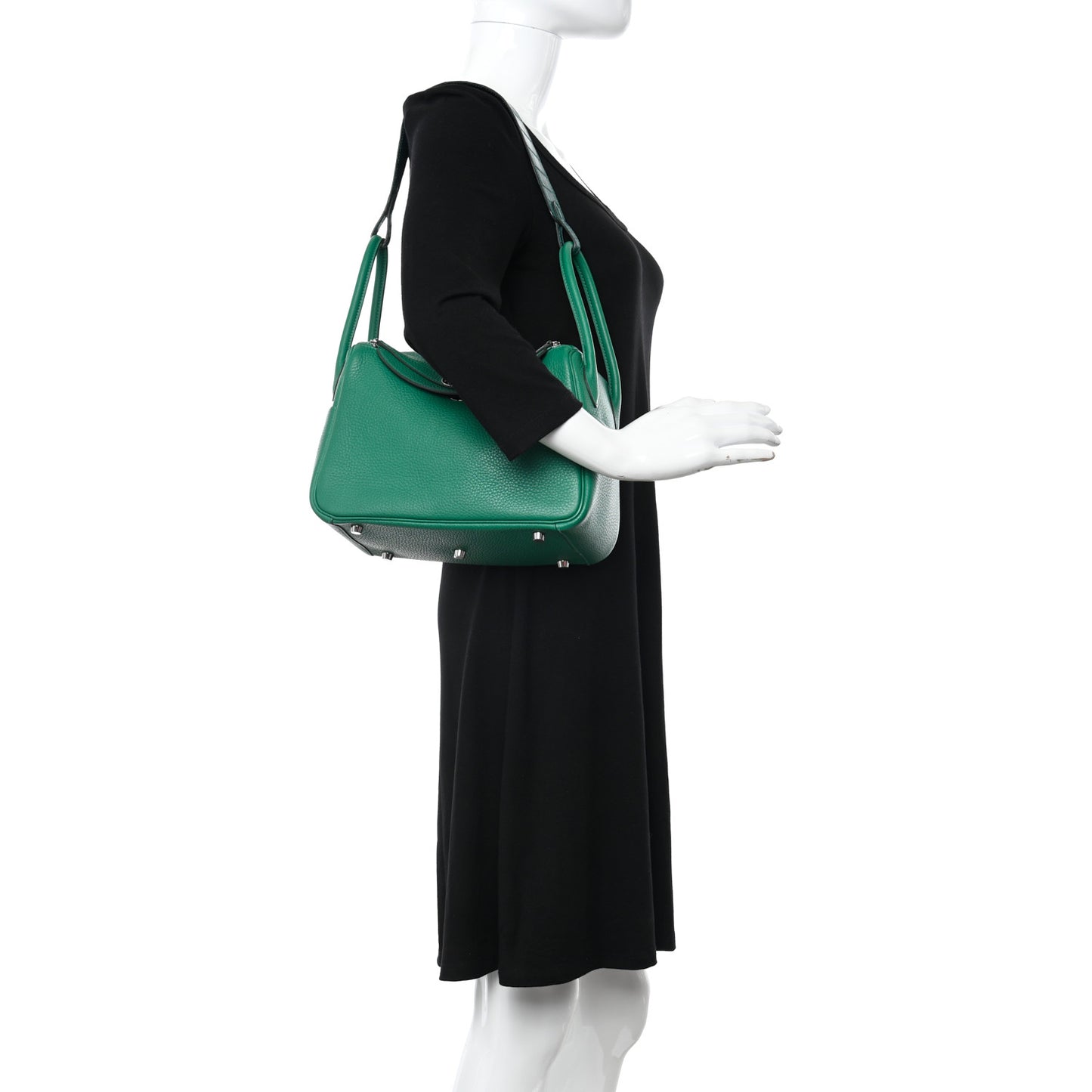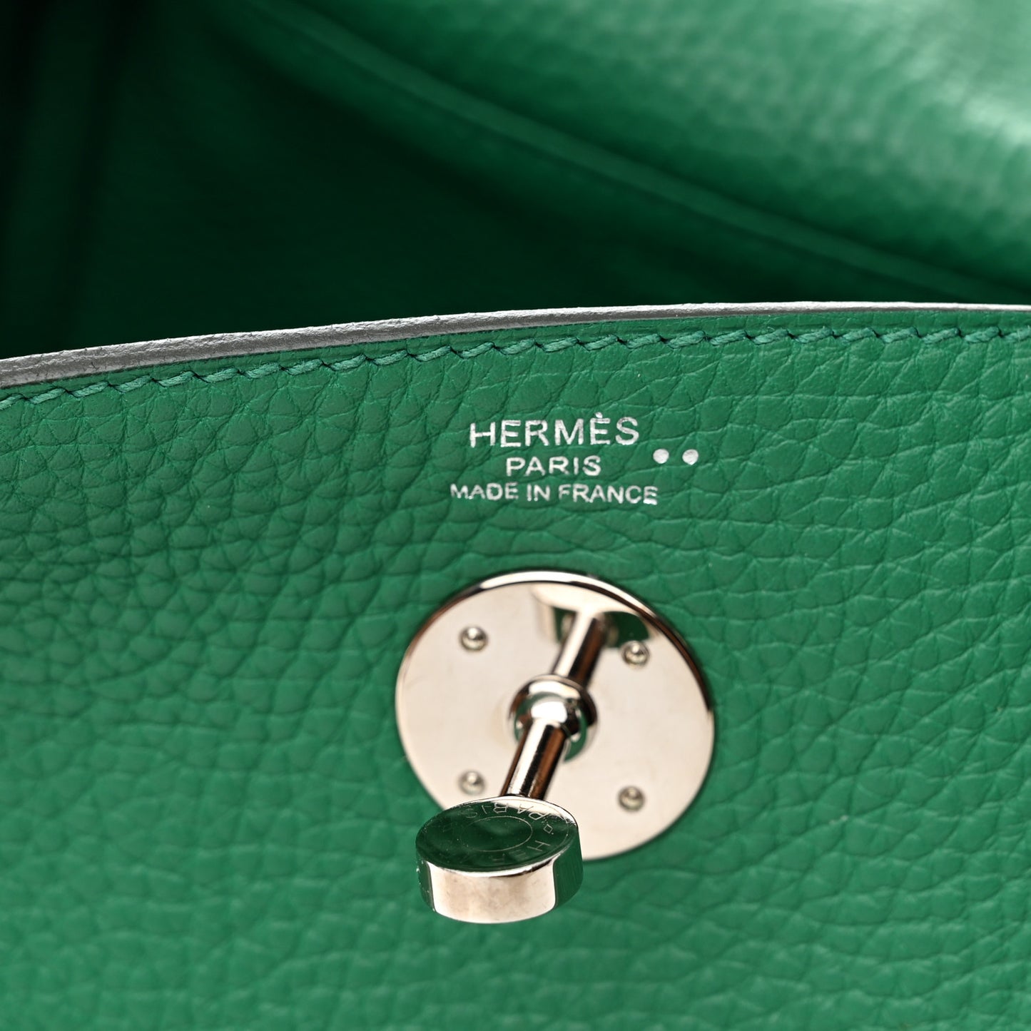 This is an authentic HERMES Taurillon Clemence Matte Niloticus Crocodile Touch Lindy 26 in Menthe. This chic tote is crafted of luxurious taurillion Clemence calfskin leather in green. This stylish bag features frontward facing rolled leather top handles on either side and a cross over top flap with a crocodile strap and a silver turn-lock closure. This opens to a green leather interior.Follow this item for alerts. Hermes is a registered trademark of Hermes. FASHIONPHILE is not affiliated with Hermes.