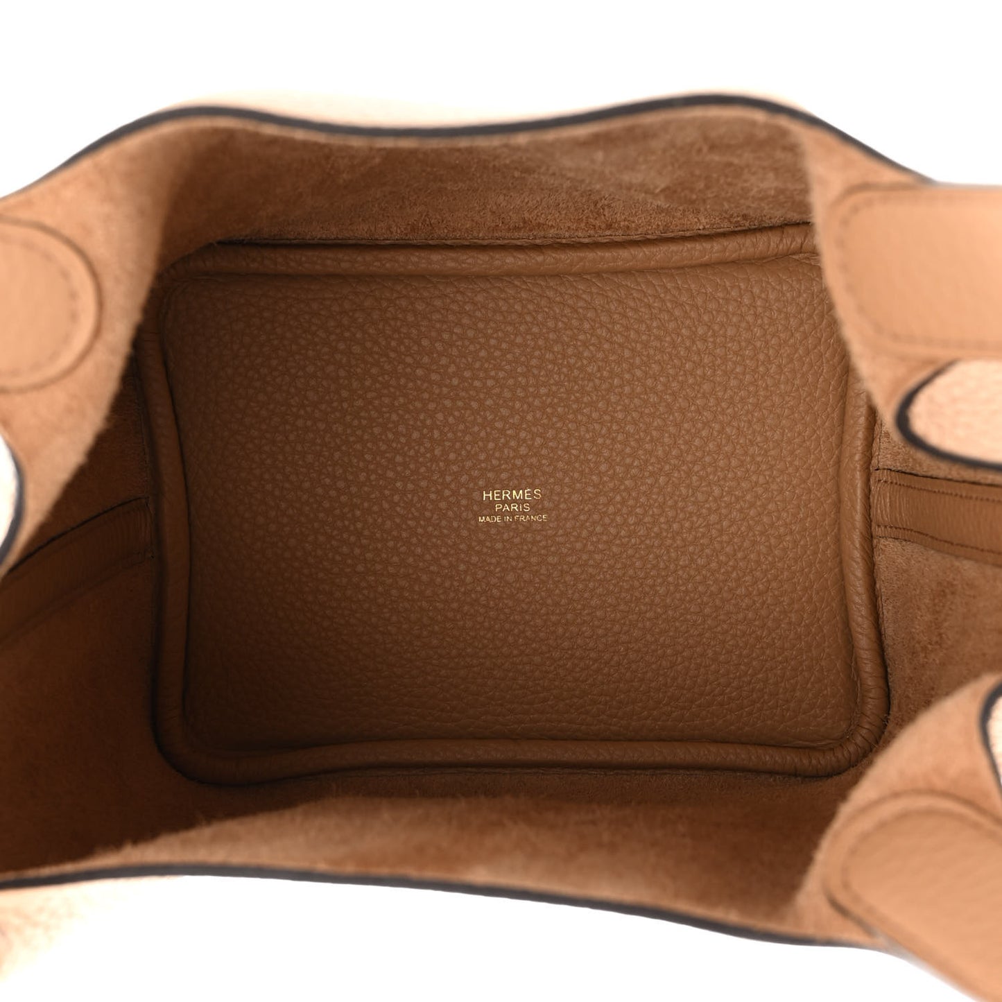 This is an authentic HERMES Taurillon Clemence Picotin Lock 18 PM in Chai. This stunning tote is crafted of luxuriously soft clemence calfskin leather in dark beige, in a relaxed bucket style, featuring gold plated hardware. The bag has a unique one-piece reinforced design with leather top handles and a thin crossover strap. The top is open to a suede and textured leather interior.Follow this item for alerts. Hermes is a registered trademark of Hermes. FASHIONPHILE is not affiliated with Hermes.