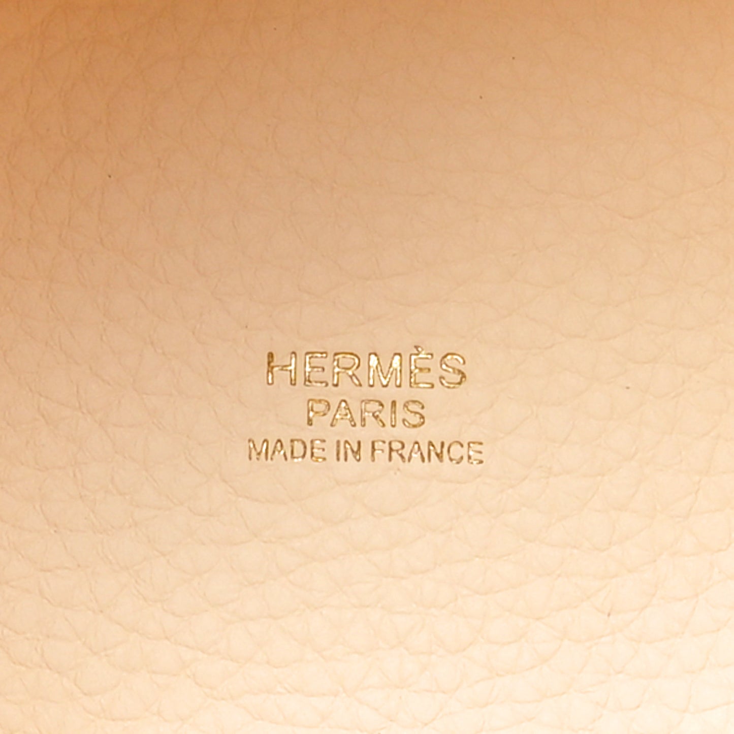 This is an authentic HERMES Taurillon Clemence Picotin Lock 18 PM in Nata. This bag is crafted of clemence calfskin leather in off-white, in a relaxed bucket style, featuring polished gold plated hardware. The bag features a unique one piece reinforced design with leather top handles and a thin cross over strap. The top is open to a matching suede interior with a leather base.Follow this item for alerts. Hermes is a registered trademark of Hermes. FASHIONPHILE is not affiliated with Hermes.