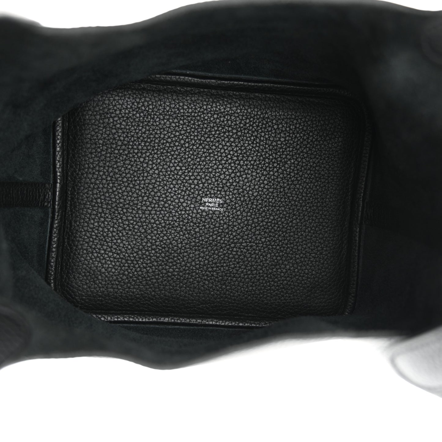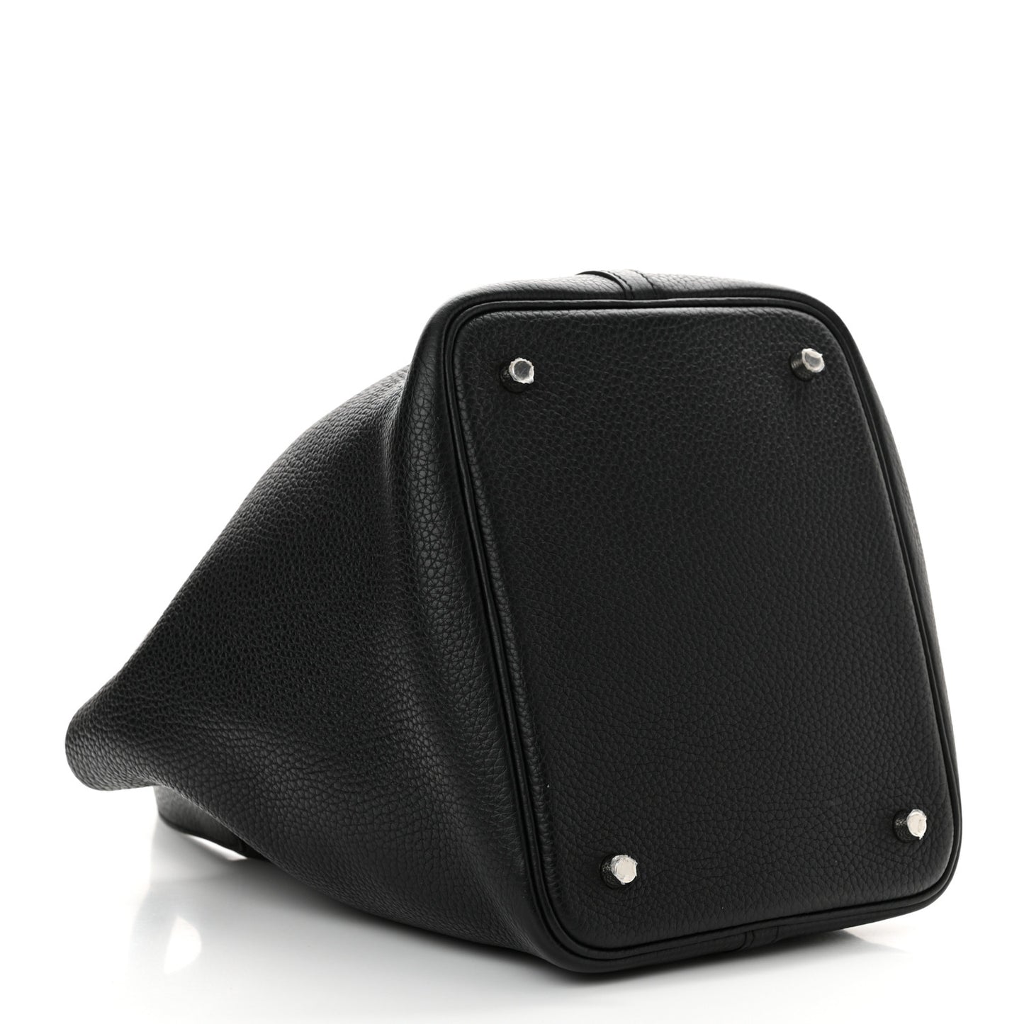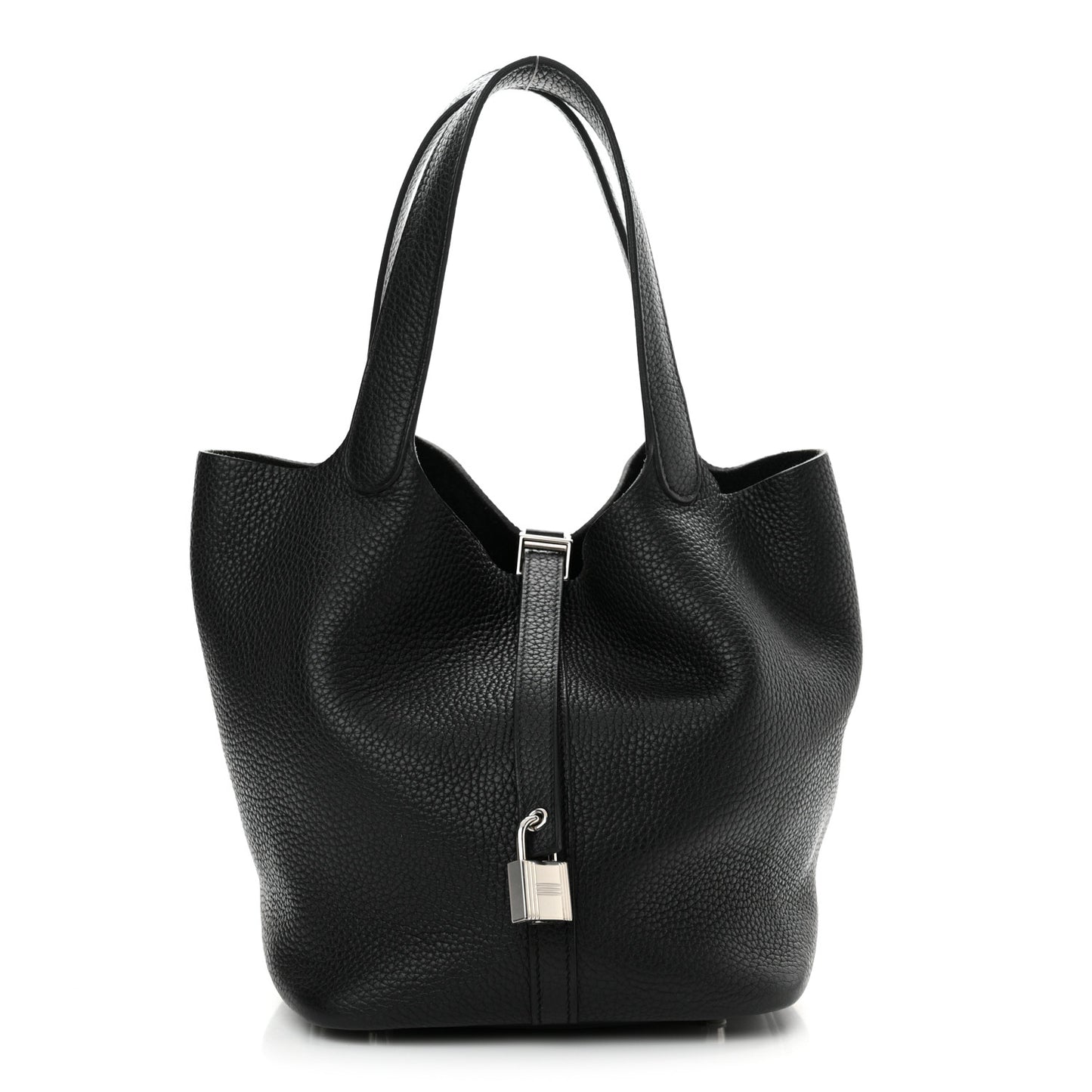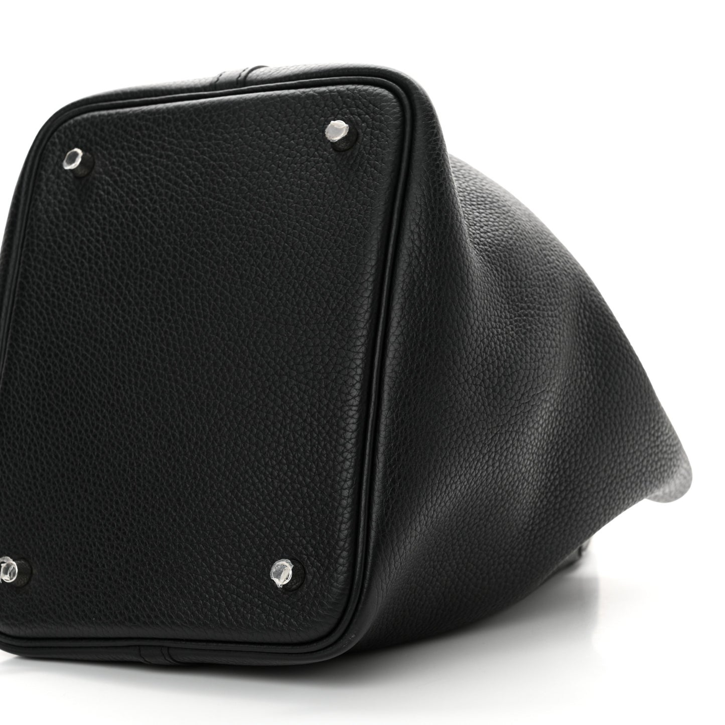 This is an authentic HERMES Taurillon Clemence Picotin Lock 22 MM in Black. This chic and lovely tote is crafted of luxuriously soft Clemence calfskin leather in black. The bag features looping leather top handles and palladium plated hardware. The top strap opens to a spacious black suede interior.Follow this item for alerts. Hermes is a registered trademark of Hermes. FASHIONPHILE is not affiliated with Hermes.