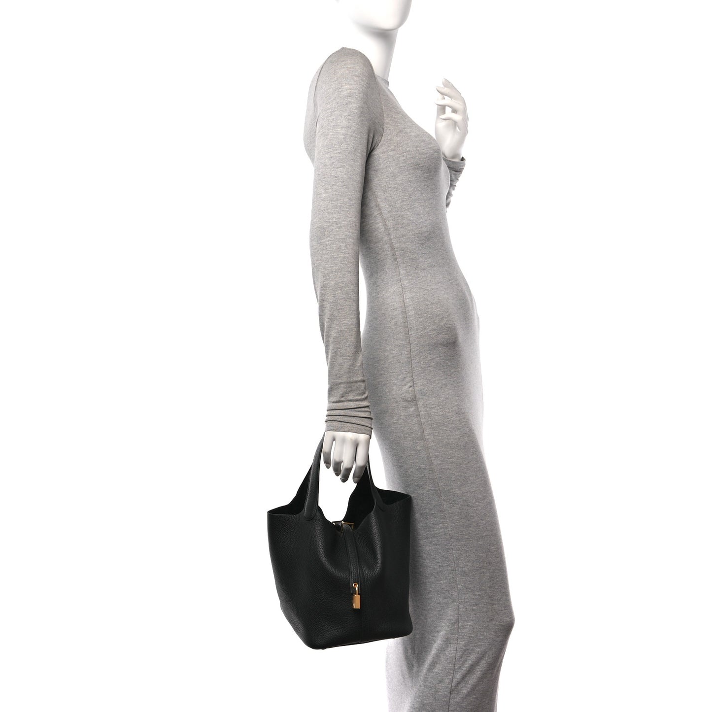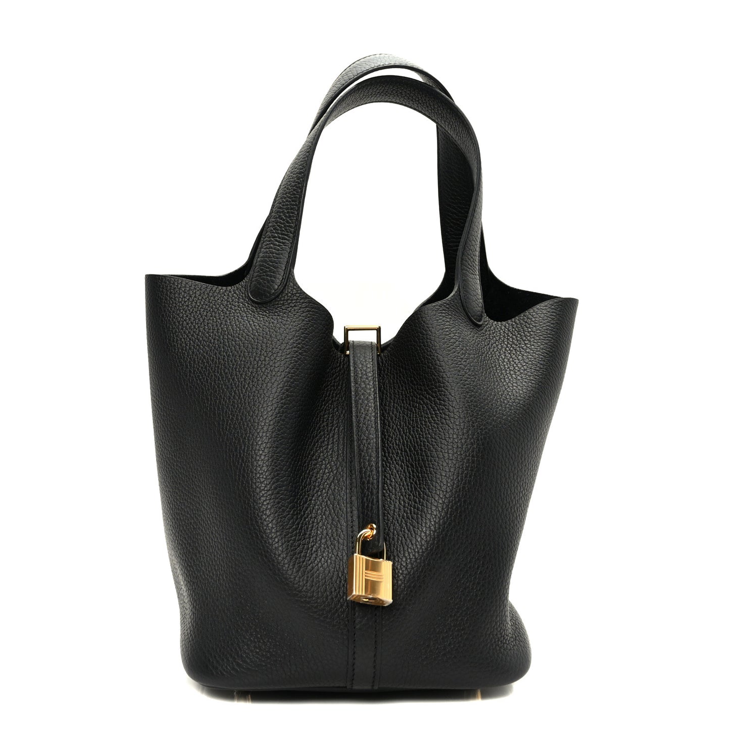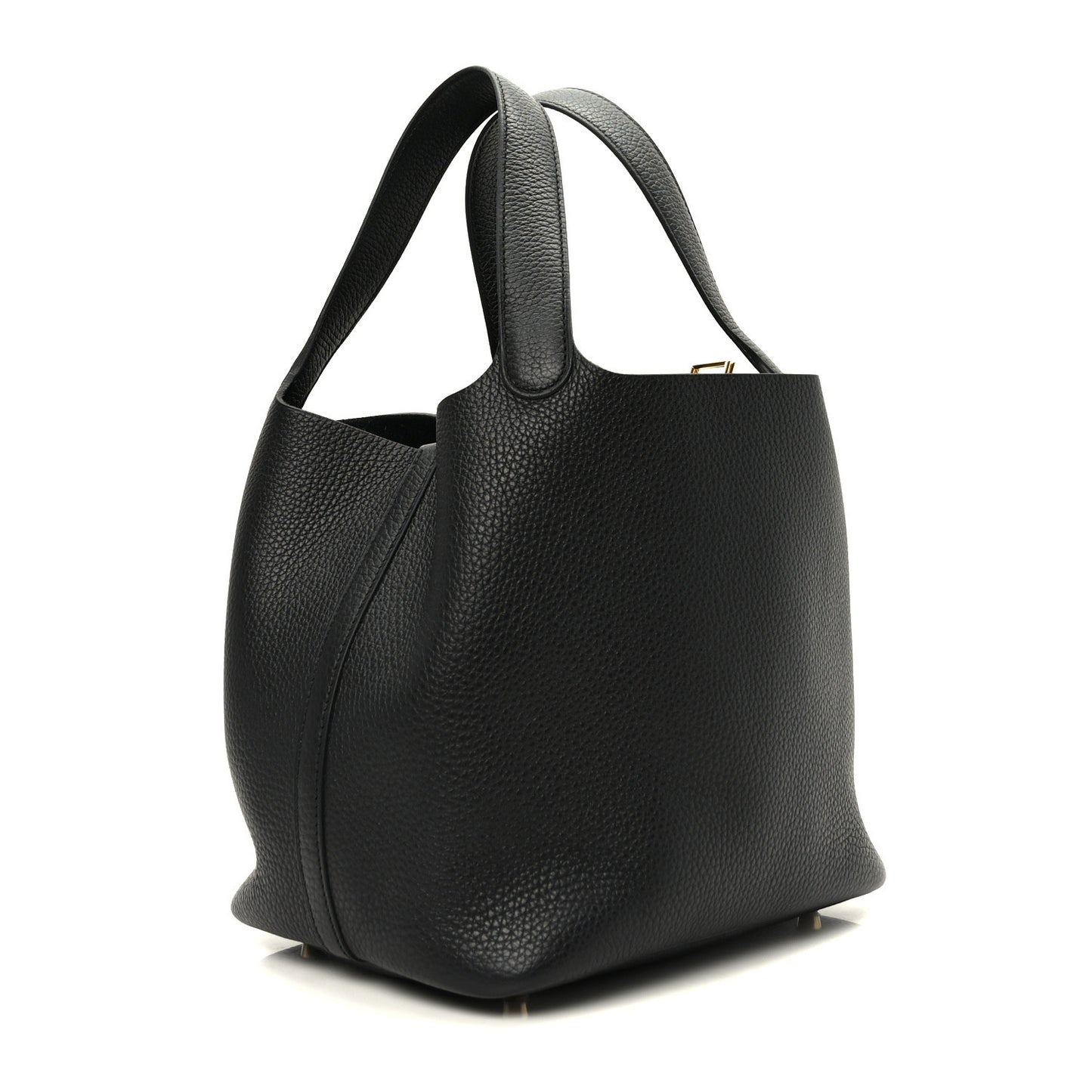 This is an authentic HERMES Taurillon Clemence Picotin Lock 22 MM in Black. This chic and lovely tote is crafted of luxuriously soft Clemence calfskin leather in black. The bag features looping leather top handles and gold plated hardware. The top strap opens to a spacious black suede interior.Follow this item for alerts. Hermes is a registered trademark of Hermes. FASHIONPHILE is not affiliated with Hermes.