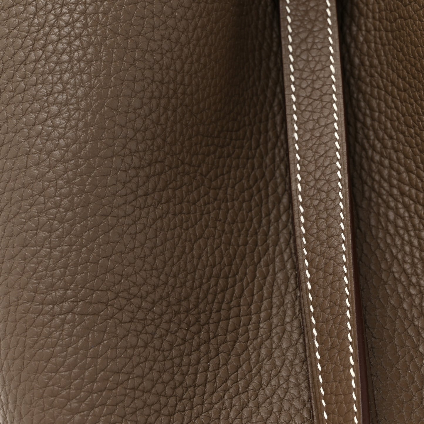 This is an authentic HERMES Taurillon Clemence Picotin Lock 22 MM in Etoupe. This stunning tote is crafted of luxuriously soft Clemence calfskin leather in taupe, in a relaxed bucket style, with palladium plated hardware. The bag features a unique one-piece reinforced design with leather top handles and a thin cross-over strap. The top is open to a matching suede interior.Follow this item for alerts. Hermes is a registered trademark of Hermes. FASHIONPHILE is not affiliated with Hermes.