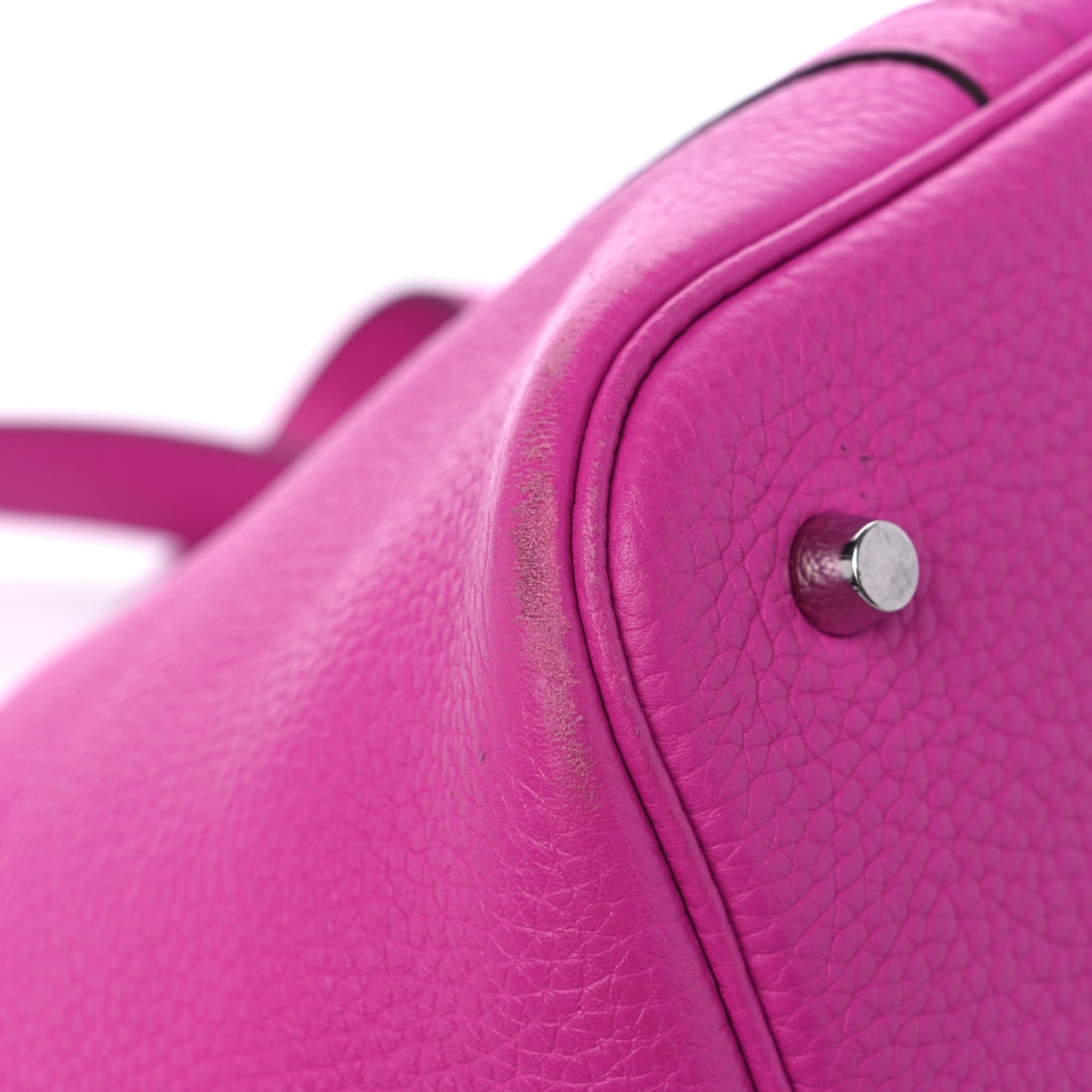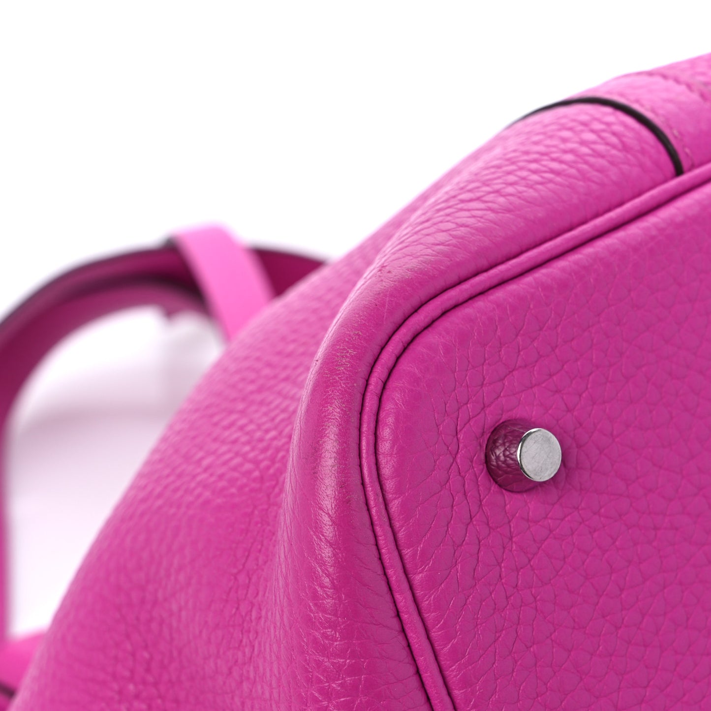 This is an authentic HERMES Taurillon Clemence Picotin Lock 22 MM in Magnolia. This stunning tote is crafted of luxuriously soft Clemence calfskin leather in dark pink. This bag features a unique one-piece reinforced design with leather top handles and a closure strap that can be secured by a palladium padlock. This opens to a spacious suede interior. This is an excellent tote for everyday wear with the classical sophistication from Hermes!Follow this item for alerts. Hermes is a registered trademark of Hermes. FASHIONPHILE is not affiliated with Hermes.