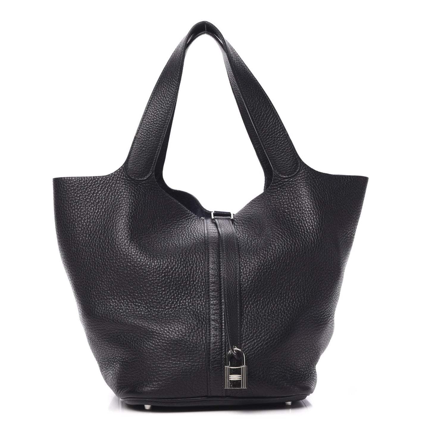 This is an authentic HERMES Taurillon Clemence Picotin Lock 26 GM in Indigo. This stunning tote is crafted of luxuriously soft Clemence calfskin leather in the darkest blue. This bag features a unique one-piece reinforced design with leather handles and a closure strap that can be secured by a silver palladium padlock. This opens to a spacious navy blue suede interior. This is an excellent tote for everyday wear with the classic sophistication from Hermes!Follow this item for alerts. Hermes is a registered trademark of Hermes. FASHIONPHILE is not affiliated with Hermes.
