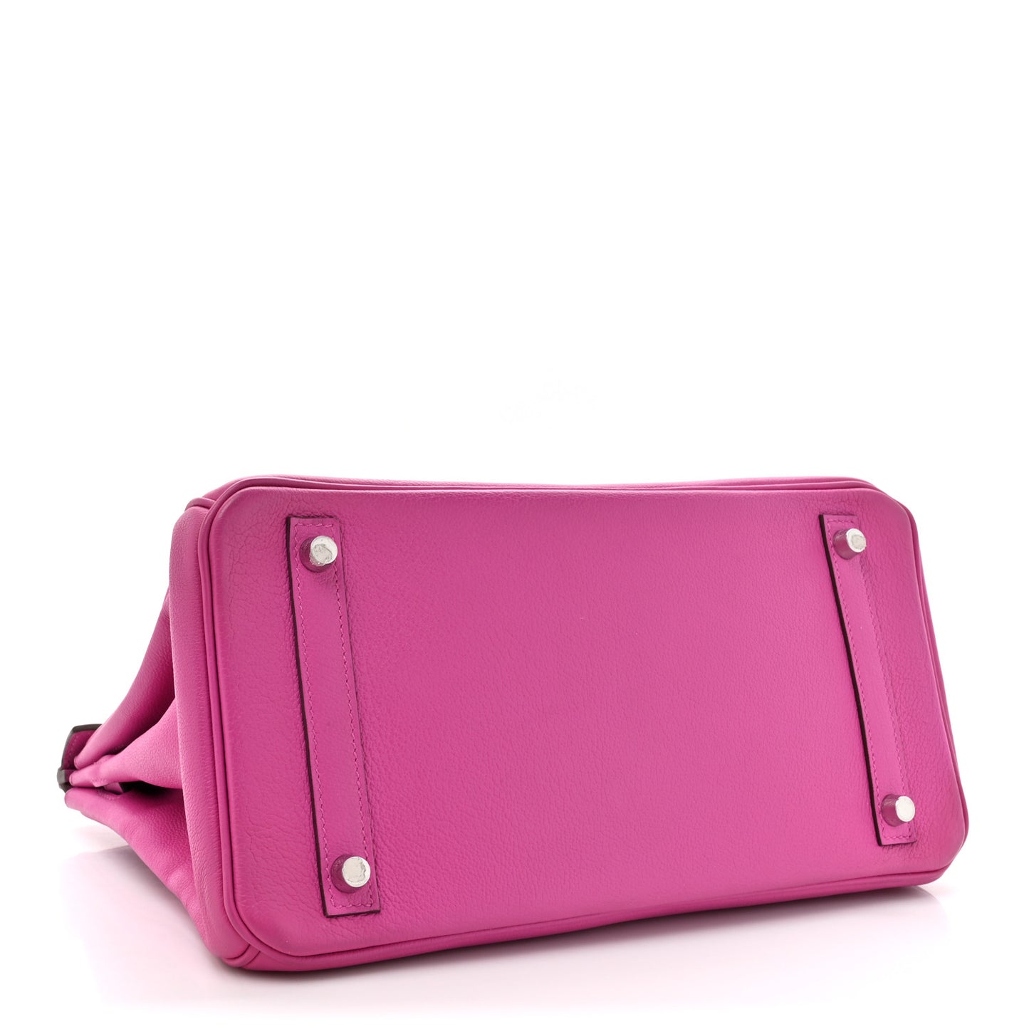 This is an authentic HERMES Taurillon Novillo Birkin 30 in Magnolia. This chic handbag classic is crafted of luxurious taurillon novillo bull leather in pink. The bag features rolled leather top handles, a cross over flap with a strap closure, clasps with a polished palladium turn lock, a hanging clochette and a padlock with keys. These open the bag to a spacious pink leather interior with zipper and patch pockets.Follow this item for alerts. Hermes is a registered trademark of Hermes. FASHIONPHILE is not affiliated with Hermes.