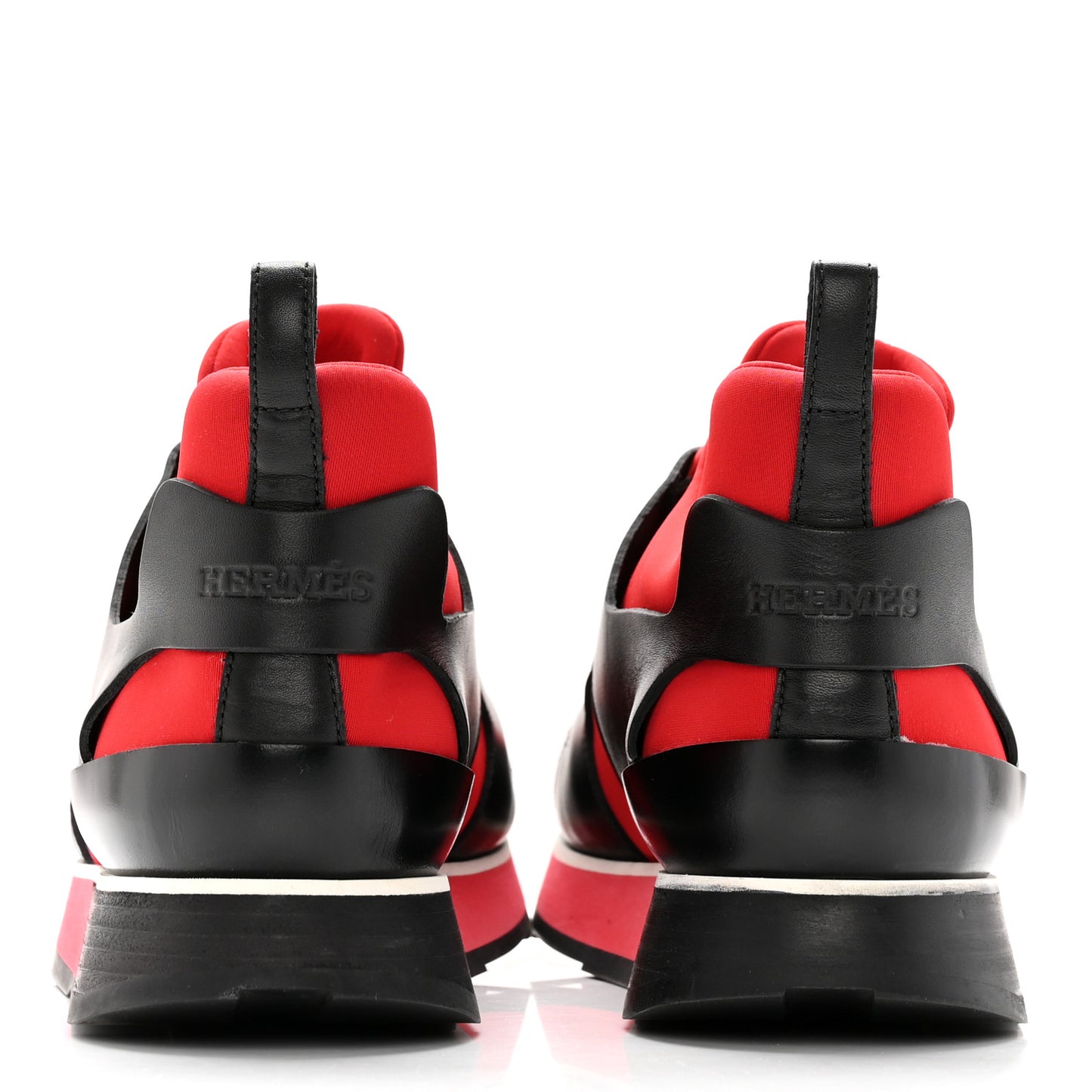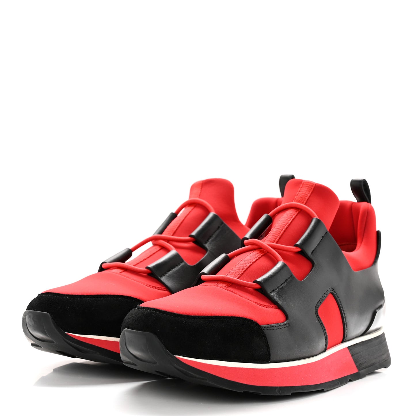 Hermes/ Accessories/ Shoes /Hermes Technical Canvas Calfskin Goatskin Womens Player Sneakers 39 Rouge Black