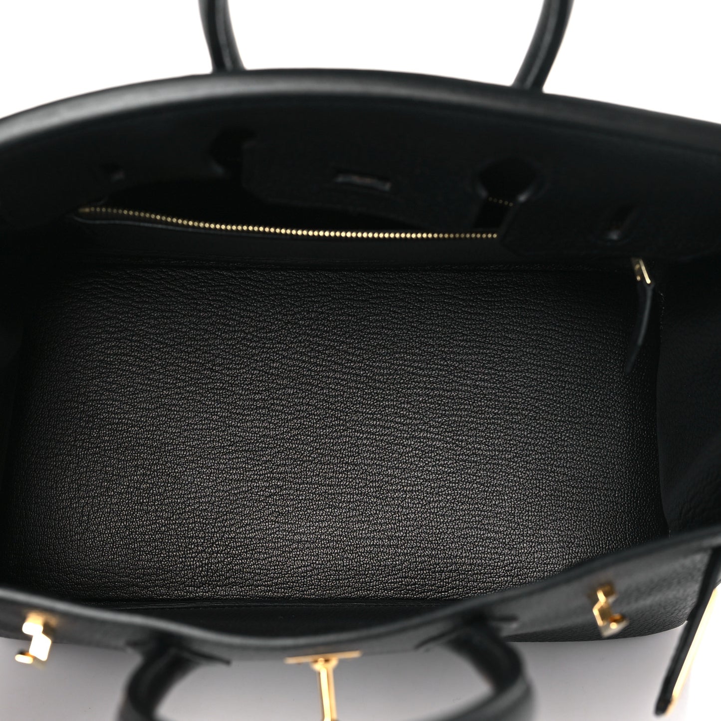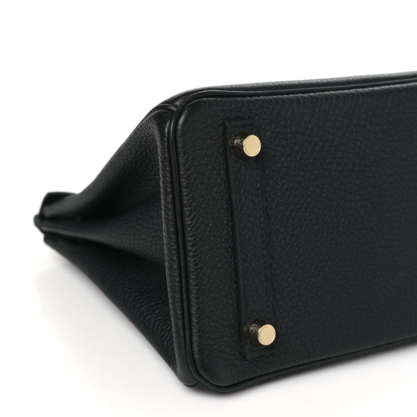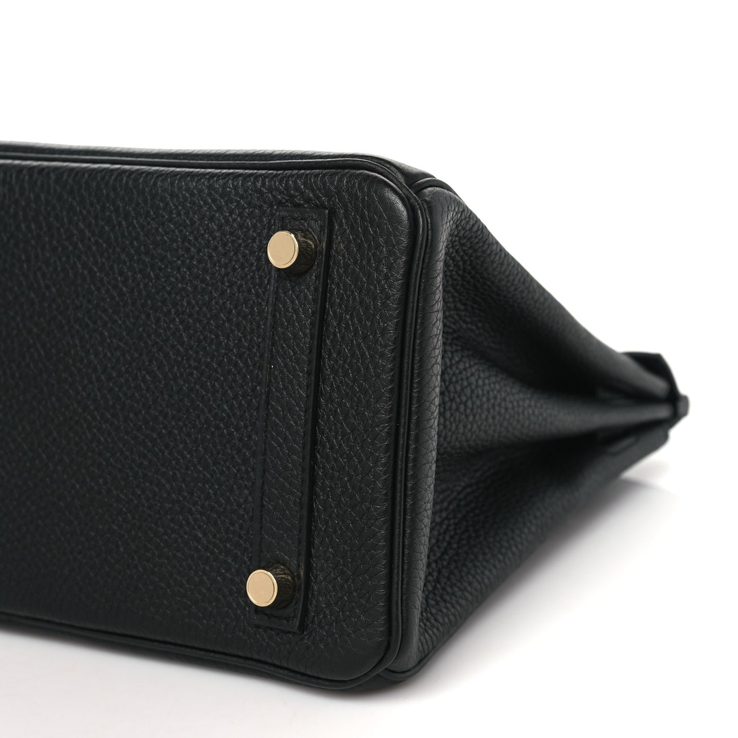 This is an authentic HERMES Togo Birkin 25 in Black. This stunning Birkin handbag is crafted of textured calfskin togo leather in black. The luxurious handbag features looping leather top handles, a cross over flap and a strap closure with polished gold hardware links. The flap opens to a matching chevre leather interior with zipper and patch pockets.Follow this item for alerts. Hermes is a registered trademark of Hermes. FASHIONPHILE is not affiliated with Hermes.