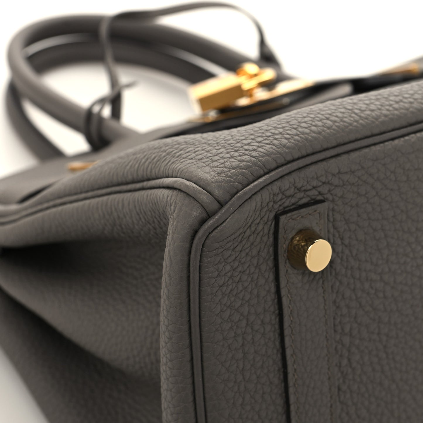This is an authentic HERMES Togo Birkin 30 in Etain. This handbag is finely crafted of grained calfskin leather in grey. It features rolled leather top handles, a leather belt, and gold plated hardware. It includes a turn lock, a padlock, and a hanging clochette with keys. The front flap opens to a matching goatskin leather interior with zipper and pockets.Follow this item for alerts. Hermes is a registered trademark of Hermes. FASHIONPHILE is not affiliated with Hermes.