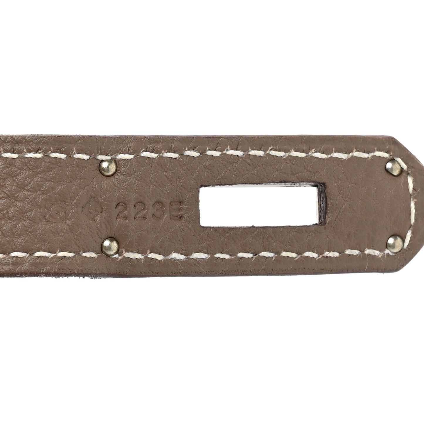 This is an authentic HERMES Togo Birkin 30 in Etoupe. This iconic handbag is finely crafted of grained calfskin leather in taupe. The bag features rolled leather top handles, a leather belt, and polished silver plated hardware, including a turn lock, a padlock, and a hanging clochette with keys. The front flap opens to a matching goatskin leather interior with zipper and patch pockets.Follow this item for alerts. Hermes is a registered trademark of Hermes. FASHIONPHILE is not affiliated with Hermes.