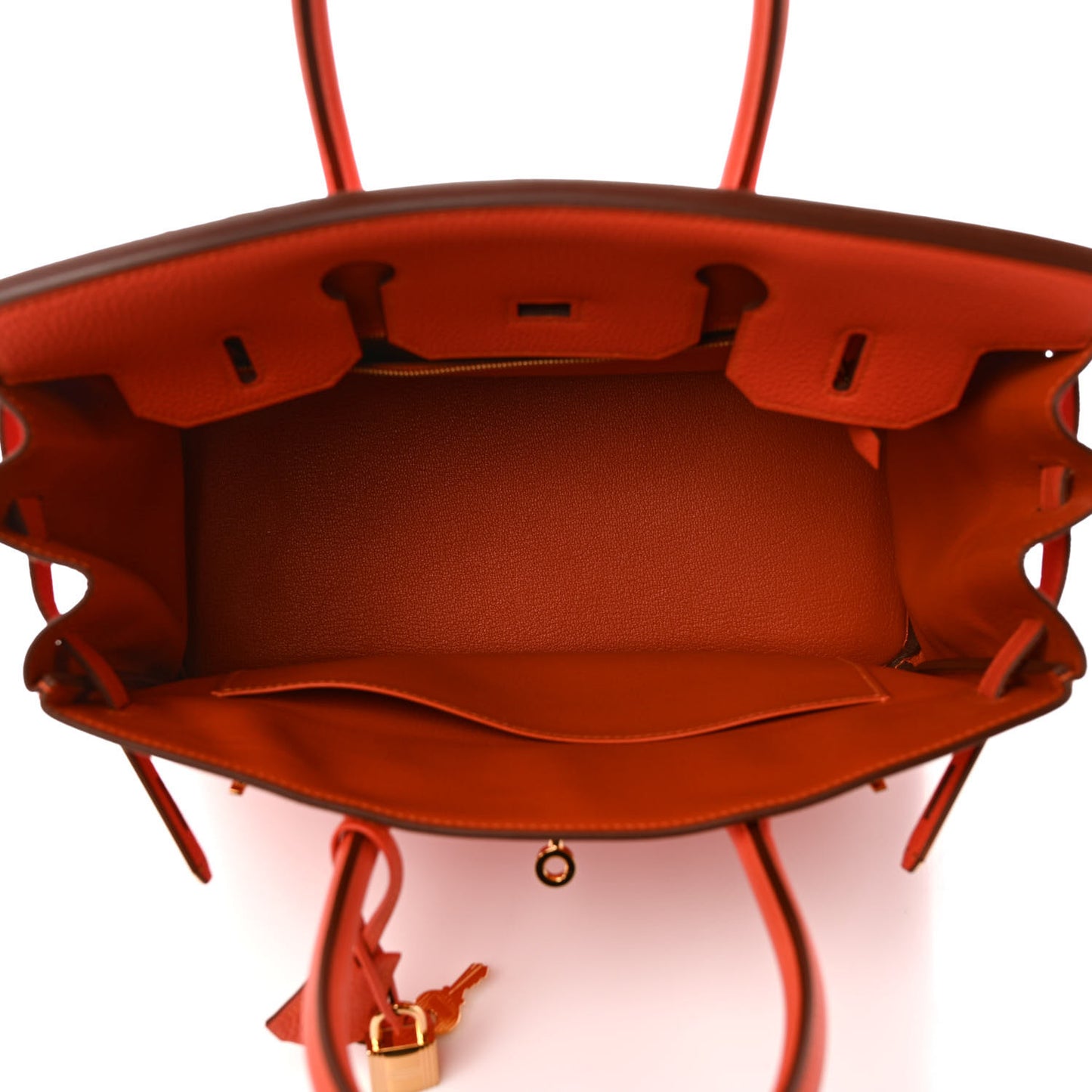 This is an authentic HERMES Togo Birkin 30 in Feu. This chic and iconic handbag is expertly handcrafted of luxurious togo calfskin leather in orange. The bag features rolled leather top handles, a front flap with a strap closure with polished gold hardware. The top flap opens to an orange goatskin leather interior.Follow this item for alerts. Hermes is a registered trademark of Hermes. FASHIONPHILE is not affiliated with Hermes.