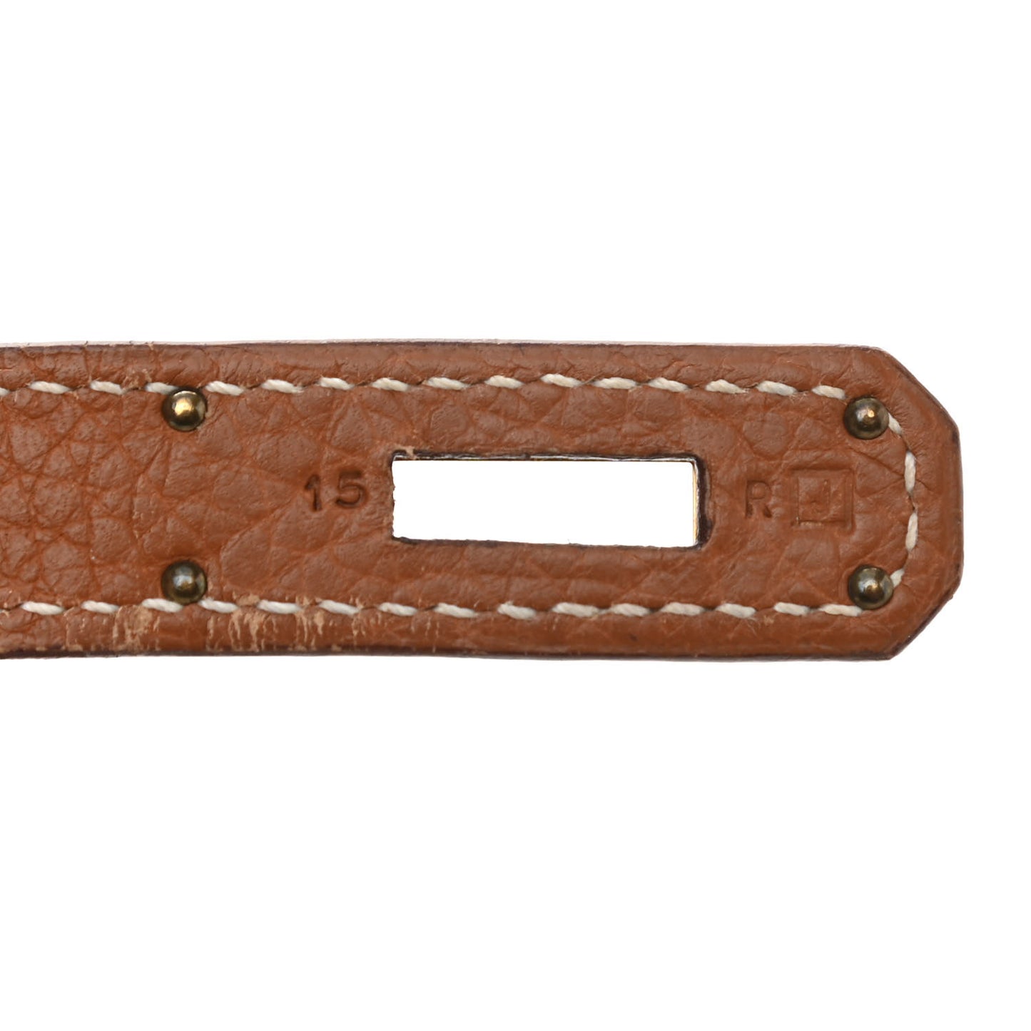 This is an authentic HERMES Togo Birkin 30 in Gold. This iconic handbag is finely crafted of grained golden brown calf leather. The bag features rolled leather top handles, a leather belt, and a polished gold plated turn lock with a padlock and a hanging clochette for the keys. This opens to a matching leather interior with zipper and patch pockets.Follow this item for alerts. Hermes is a registered trademark of Hermes. FASHIONPHILE is not affiliated with Hermes.