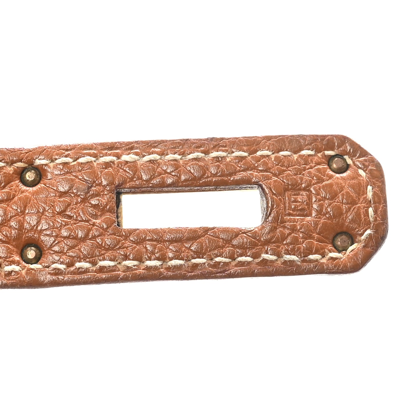 This is an authentic HERMES Epsom Birkin 30 in Gold. This iconic handbag is finely crafted of golden brown grained calfskin leather. The bag features rolled leather top handles, belt closure, and a gold plated turn lock. This opens to a matching leather interior with zipper and patch pockets.Follow this item for alerts. Hermes is a registered trademark of Hermes. FASHIONPHILE is not affiliated with Hermes.