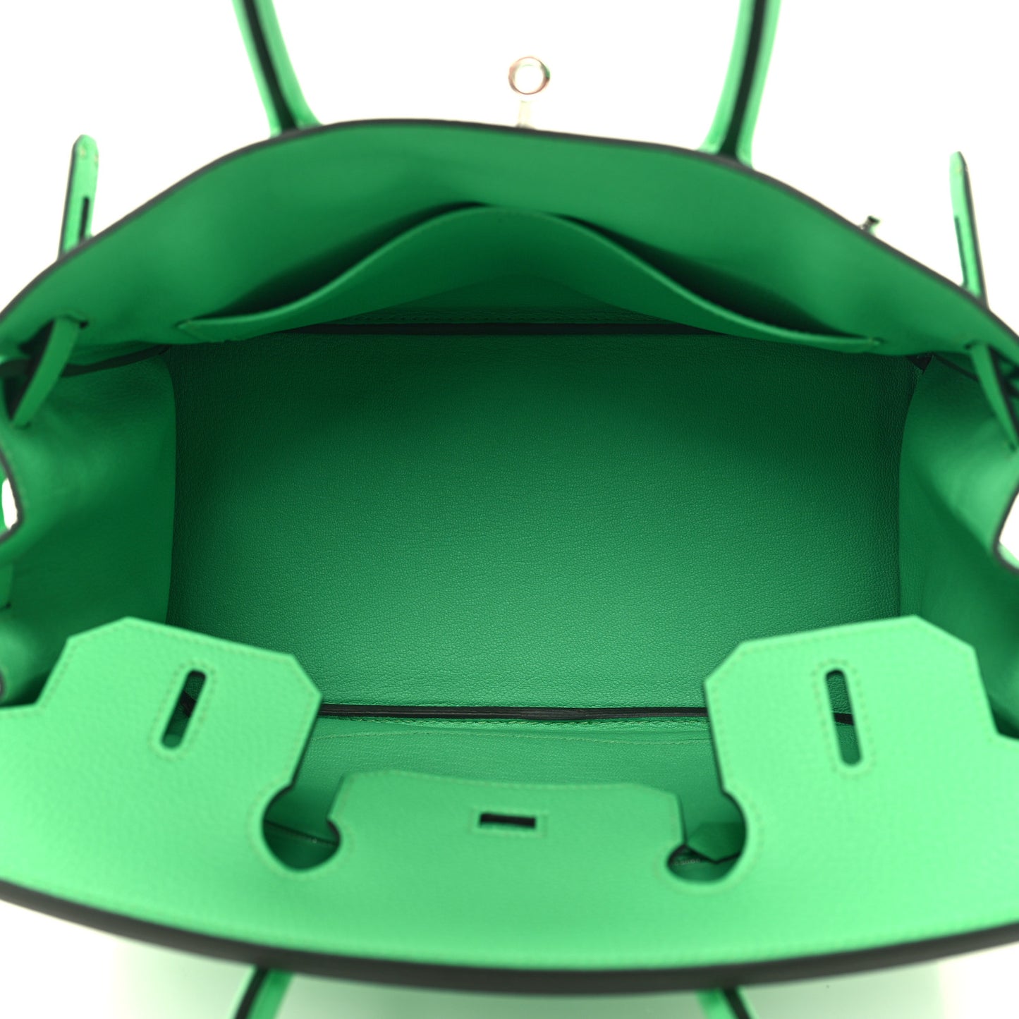 This is an authentic HERMES Togo Birkin 30 in Vert Comics. This stunning handbag is crafted of bright green calfskin leather and features rolled leather top handles, a cross over flap, a strap closure, and palladium hardware including a turn lock, padlock, and keys. This opens to a matte goatskin leather interior with zipper and patch pockets.Follow this item for alerts. Hermes is a registered trademark of Hermes. FASHIONPHILE is not affiliated with Hermes.