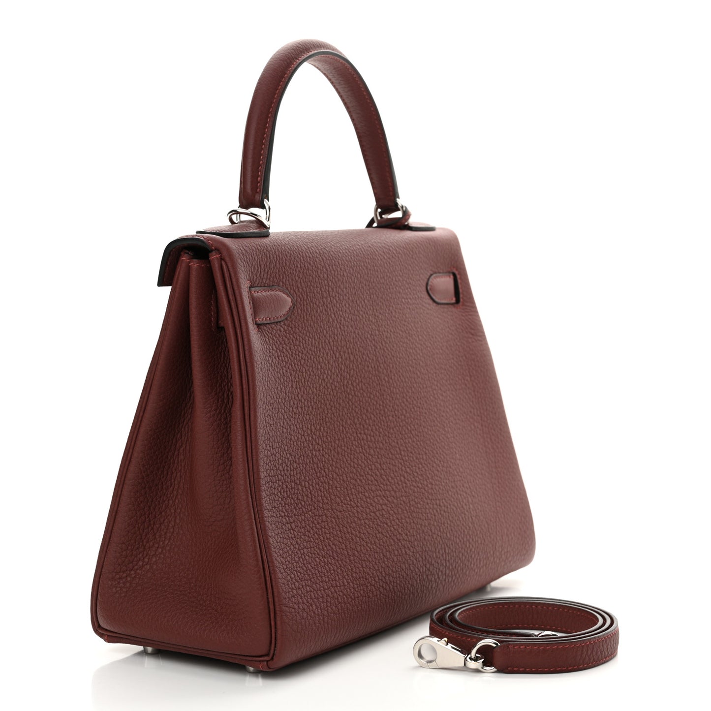 This is an authentic HERMES Togo Kelly Retourne 28 in Rouge H. This Kelly handbag is crafted of richly textured calfskin leather in red. The bag features a reinforced leather top handle, an optional leather shoulder strap and a crossover flap with palladium plated hardware including a Kelly turn lock with padlock and clochette and keys. The flap opens to a goatskin leather interior with zipper and flat pockets.Follow this item for alerts. Hermes is a registered trademark of Hermes. FASHIONPHILE is not affiliated with Hermes.