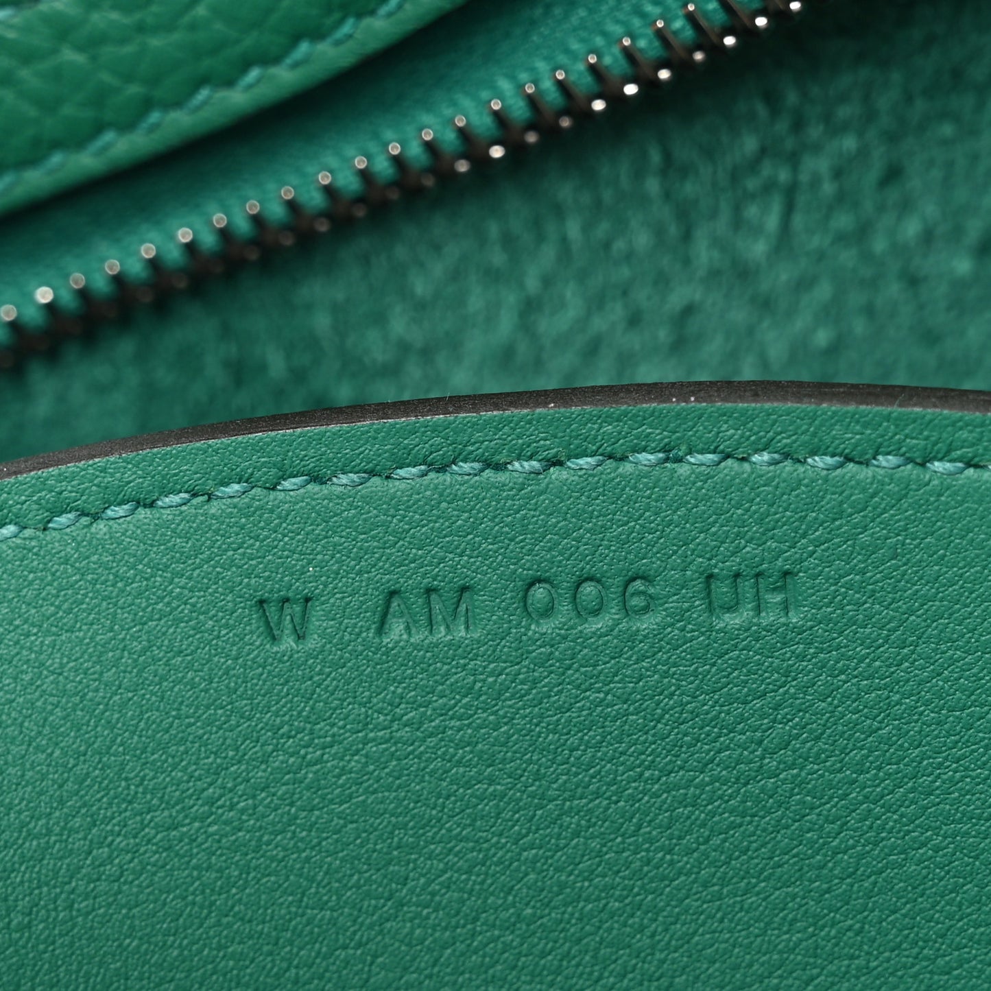 This is an authentic HERMES Togo Swift P'tit Arcon in Vert Vertigo. This bag is crafted of Togo calfskin leather in green with Swift leather accents. It features an external patch pocket and key ring, a leather shoulder strap, and palladium hardware. The top zipper opens to a suede leather interior.Follow this item for alerts. Hermes is a registered trademark of Hermes. FASHIONPHILE is not affiliated with Hermes.