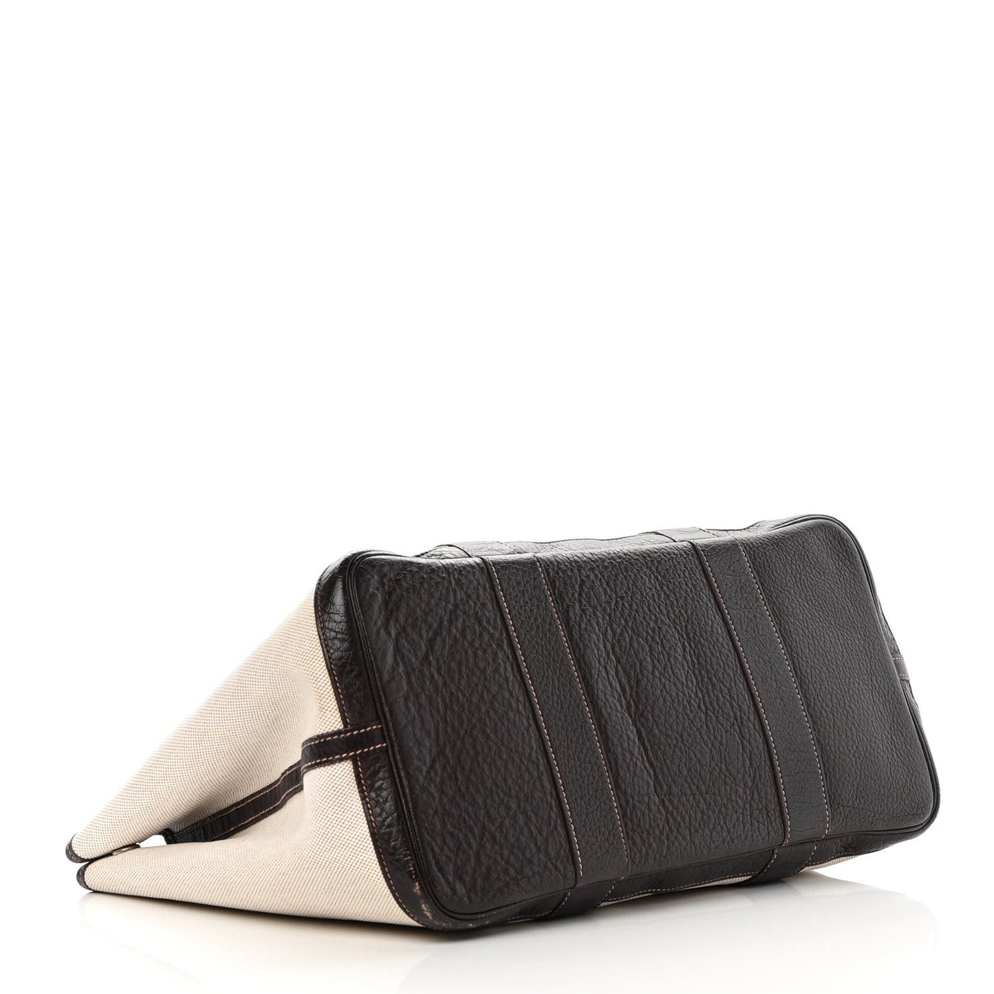 This is an authentic HERMES Toile Buffle Gala Garden Party Tote 36 MM in Marron Fonce. This sophisticated bag has a professional appeal with a structured shape of natural toile canvas that is durable and strong. This is reinforced with deep brown buffalo leather including a solid leather base and side leather that extends into top rolled handles. There is a palladium silver snap top closure and the interior is a spacious canvas with a leather base.Follow this item for alerts. Hermes is a registered trademark of Hermes. FASHIONPHILE is not affiliated with Hermes.