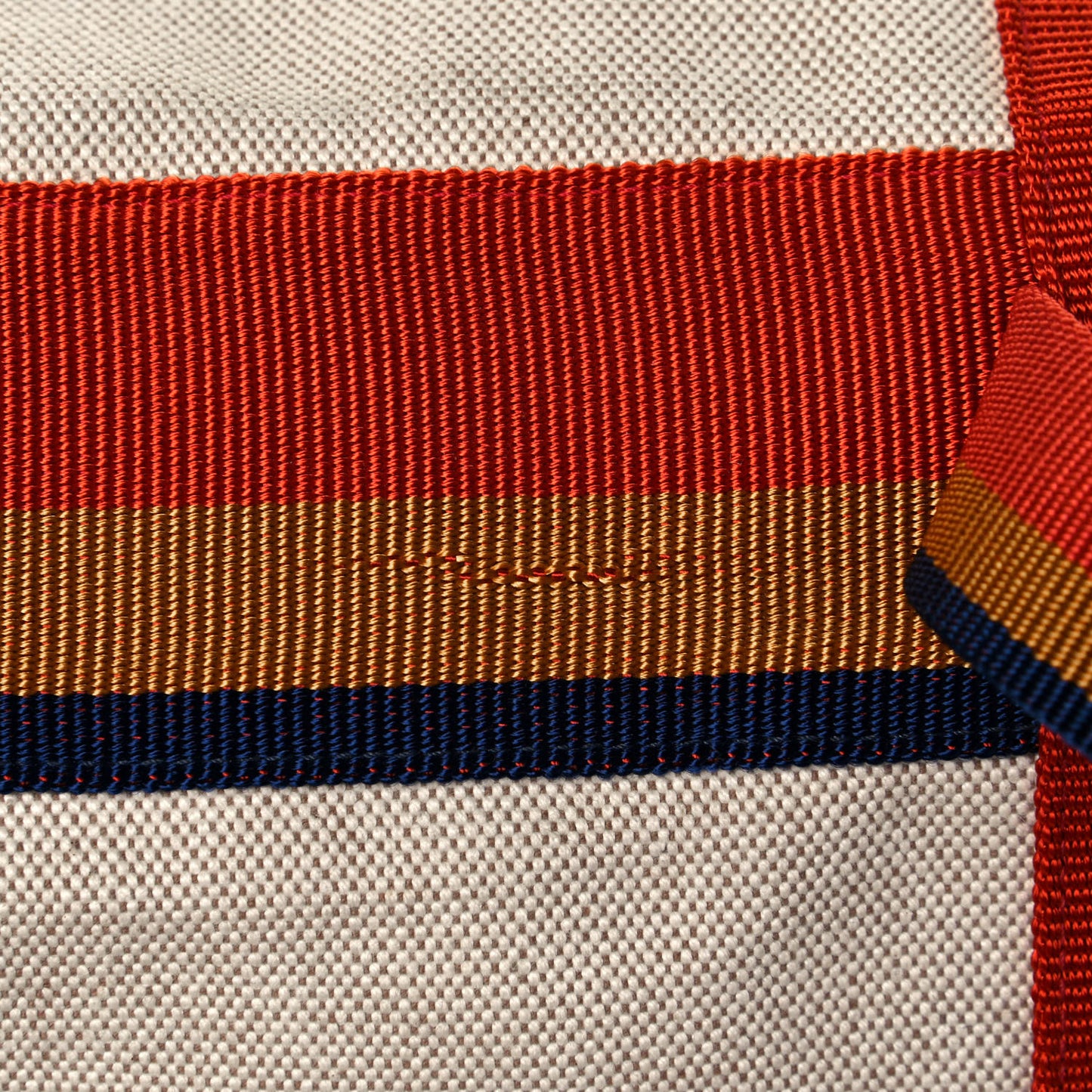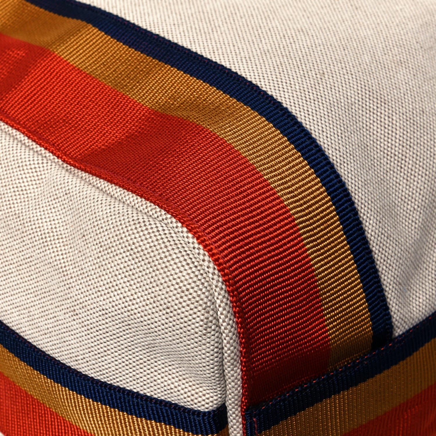 This is an authentic HERMES Toile Cavalier Duffle Tote. This sac style bag features a multicolor orange trim and matching carrying strap. Two silver zippers with Hermes zipper opens the bag on the side. This is opened to a matching spacious interior.