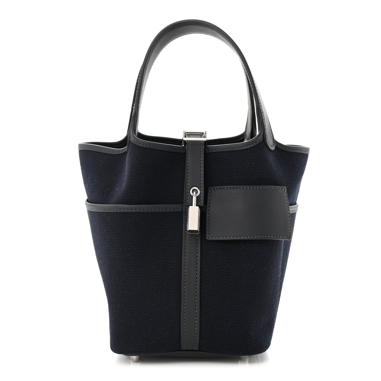 Hermes/ Bags/ Handbags /Hermes Toile Goeland Swift Cargo Picotin Lock 18 Bleu Marine