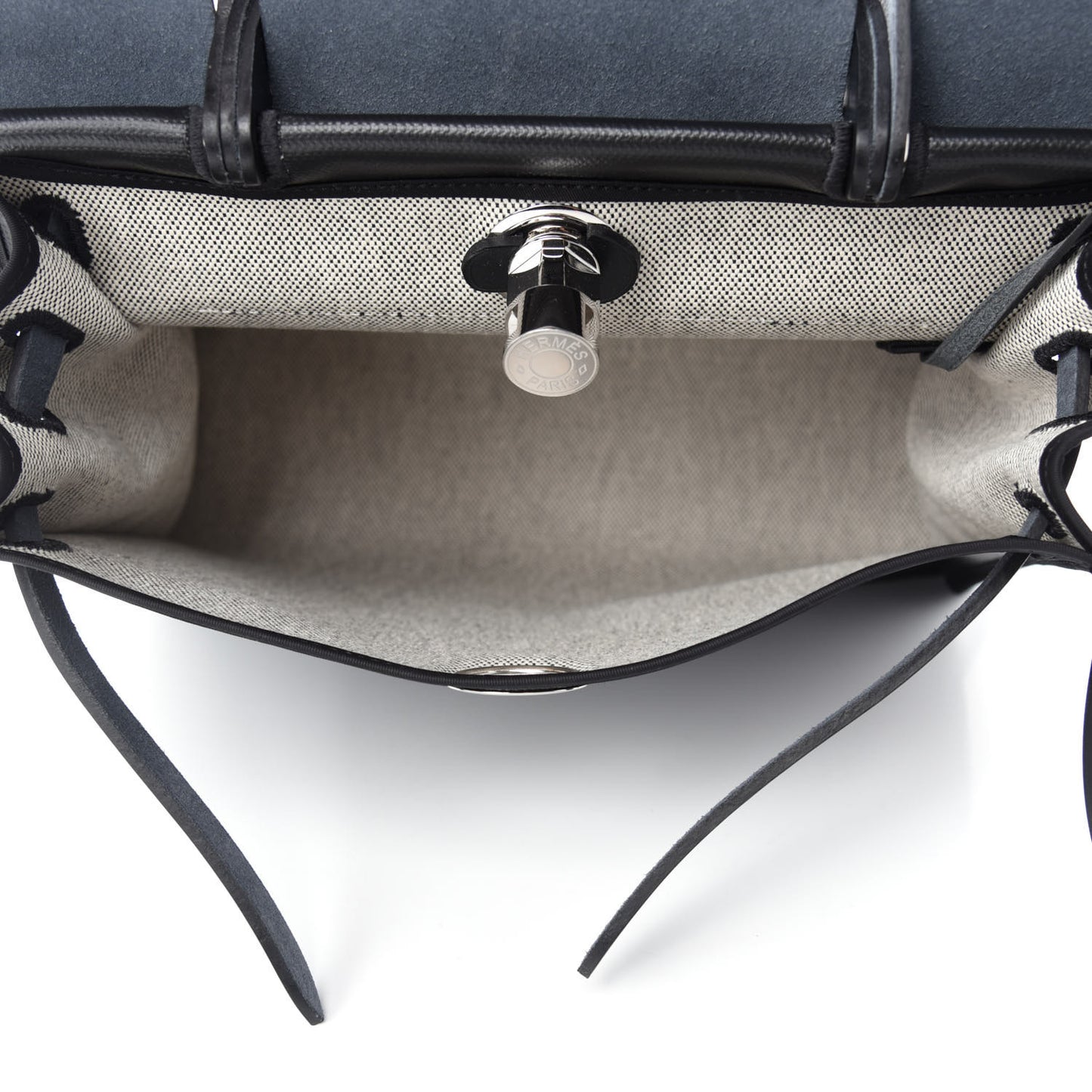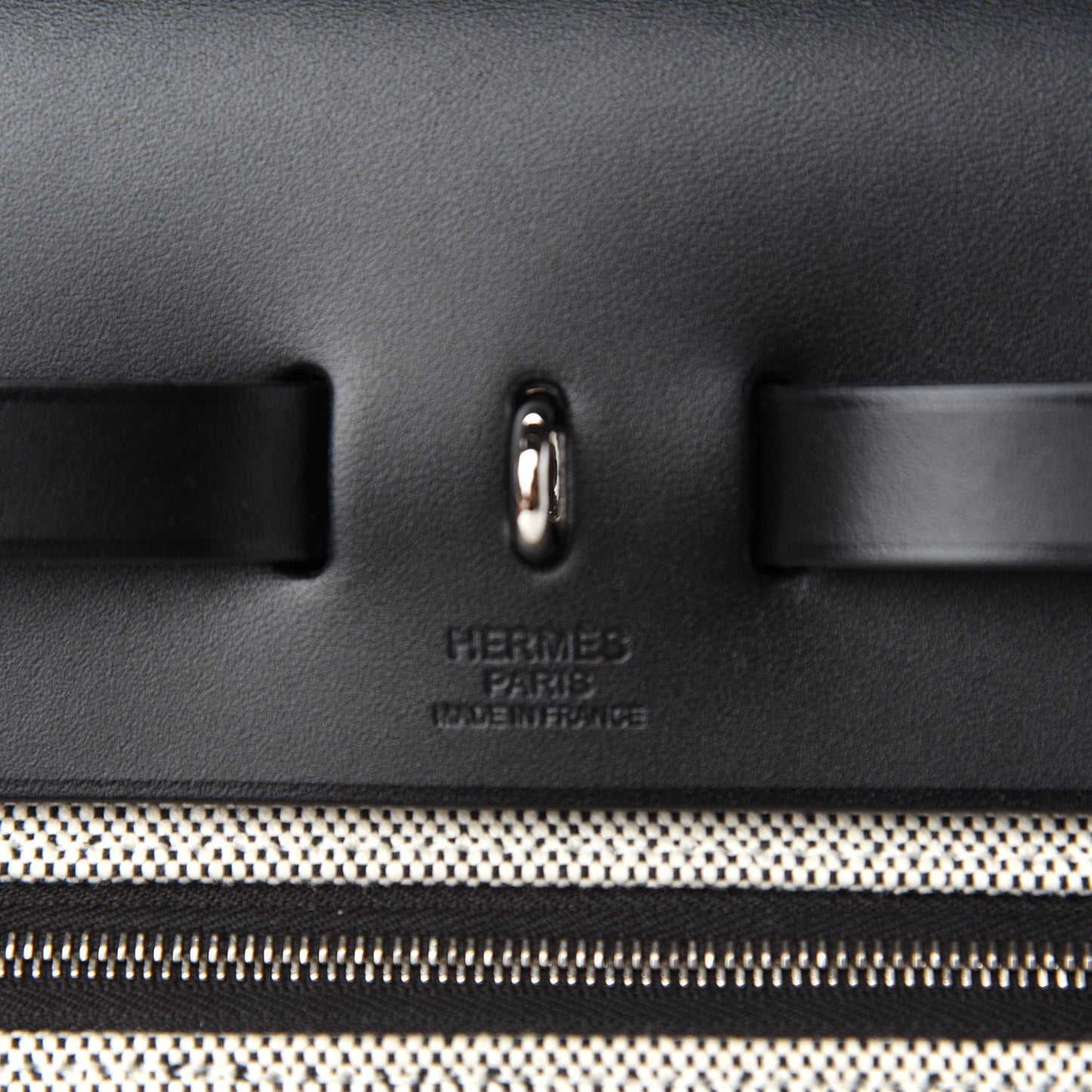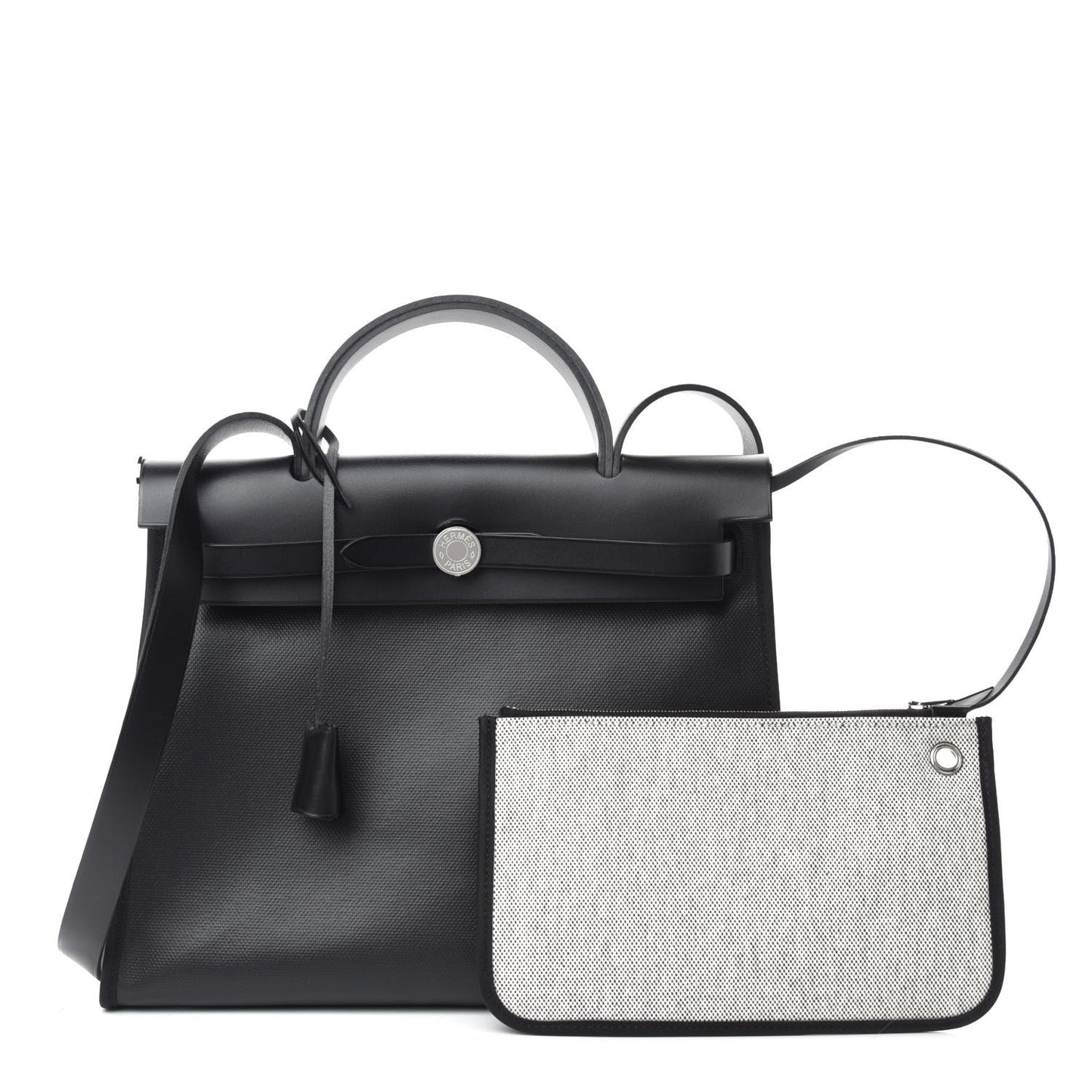 This is an authentic HERMES Toile H Berline Vache Hunter Herbag Zip PM 31 in Black and Ecru. This stylish tote is crafted of coated canvas in black. The shoulder bag features a rear canvas hanging zipper pocket, a black vache leather top crest, a leather top handle, a shoulder strap, and a strap closure with polished palladium hardware. This opens to a canvas interior with a matching canvas pouch.Follow this item for alerts. Hermes is a registered trademark of Hermes. FASHIONPHILE is not affiliated with Hermes.