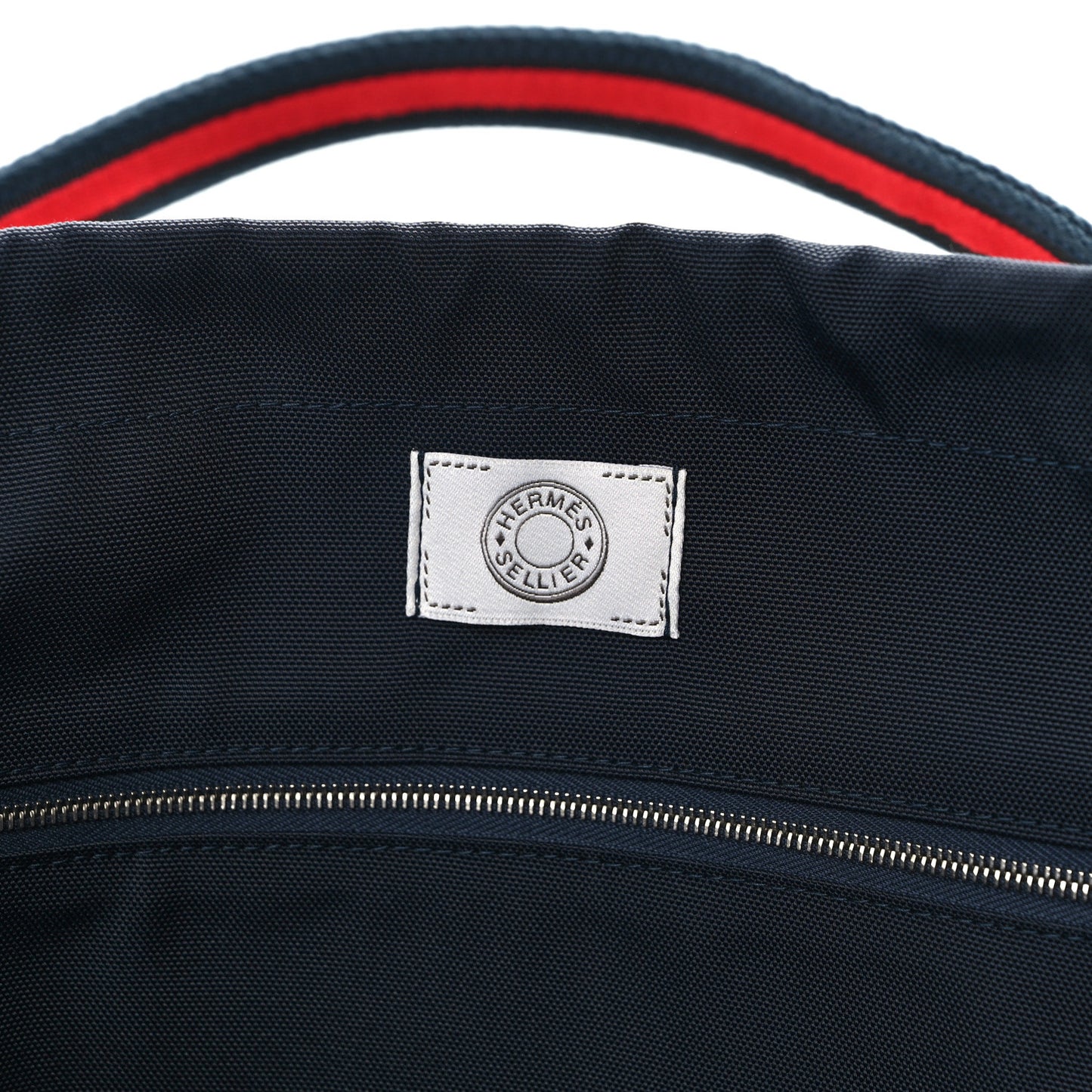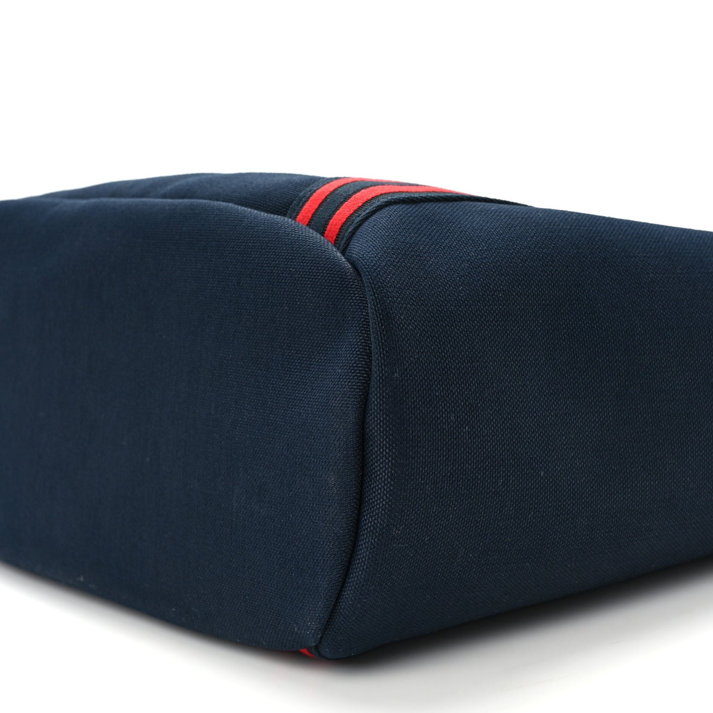 This is an authentic HERMES Toile Sac De Pansage Groom in Bleu Marine and Rouge. This practical equestrian-style bag is crafted with durable cotton canvas in navy blue. The tote features red canvas trim leading to top handles, an optional nylon shoulder strap, exterior pockets, and palladium silver hardware. The open top reveals a bright blue fabric interior with a removable insert.Follow this item for alerts. Hermes is a registered trademark of Hermes. FASHIONPHILE is not affiliated with Hermes.