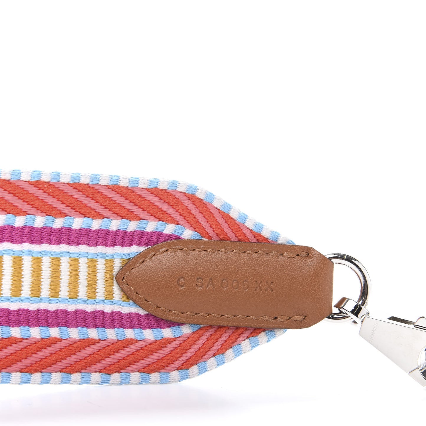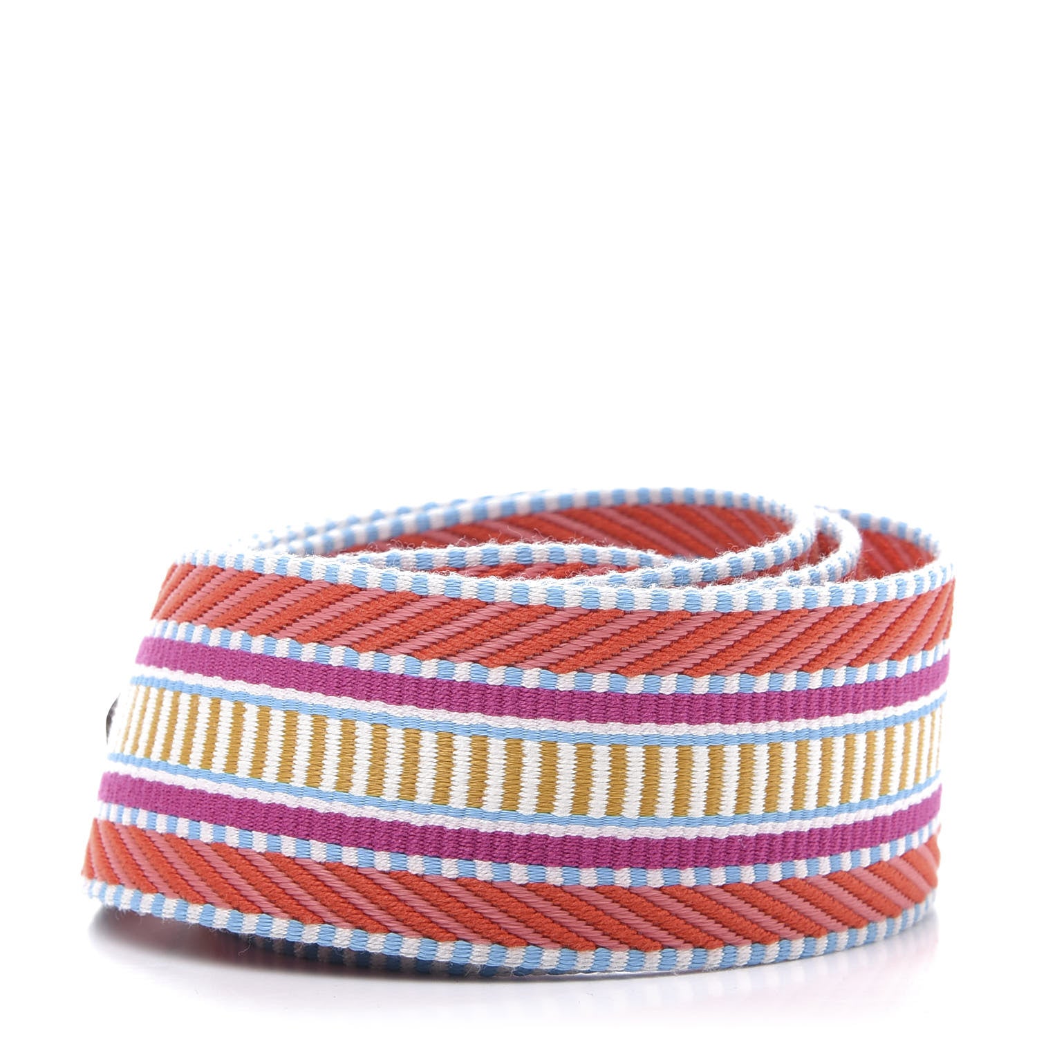 This is the authentic HERMES Toile Swift 50mm Sangle Cavale Shoulder Strap in Capucine, Magnolia and Gold. This stylish accessory is crafted of colorful canvas and features polished palladium silver claw clasps.Follow this item for alerts. Hermes is a registered trademark of Hermes. FASHIONPHILE is not affiliated with Hermes.
