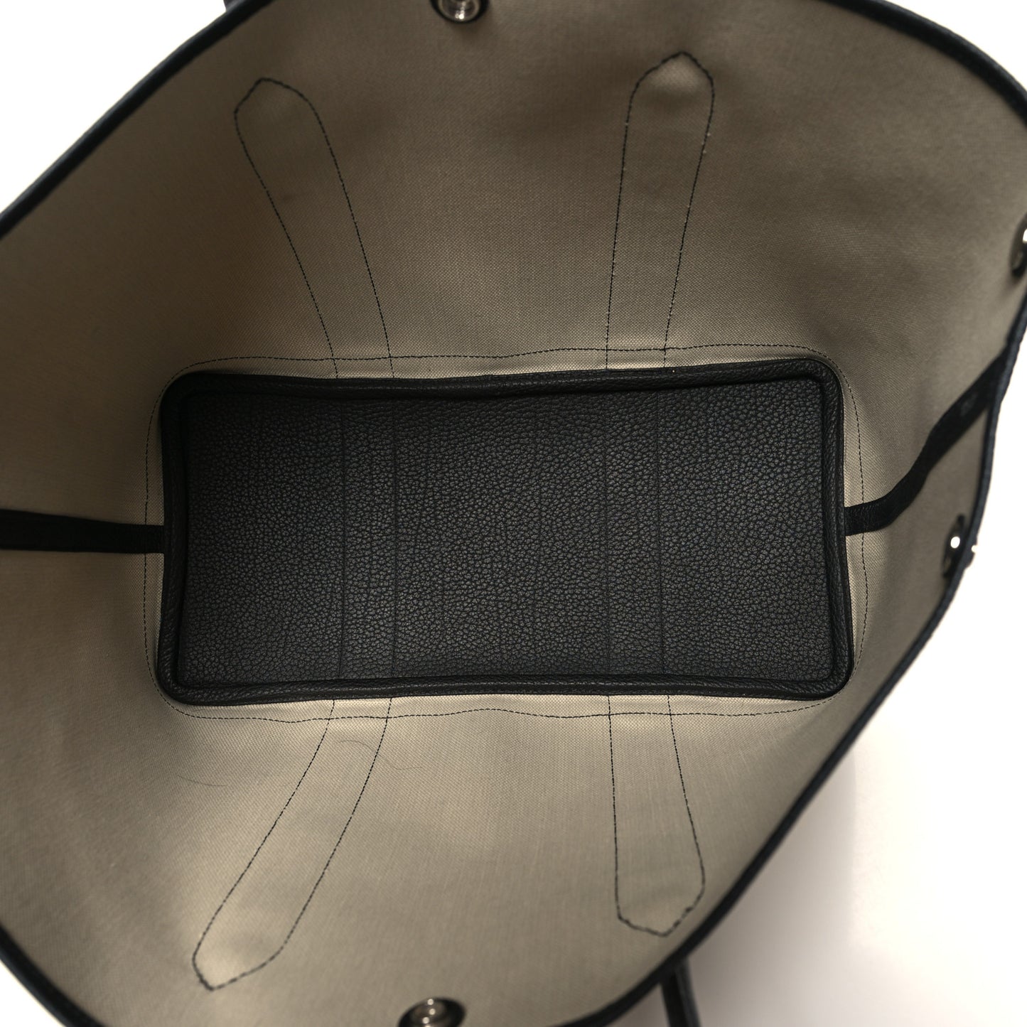 This is an authentic HERMES Twill D Negonda Garden Party 36 MM Tote in Beton and Black. This is a beautiful Hermes tote constructed of beige canvas that is durable and strong. This is reinforced with black leather including a solid leather base and sides that extend into top rolled handles. There is a snap top closure and the spacious interior is beige canvas with a leather base.Follow this item for alerts. Hermes is a registered trademark of Hermes. FASHIONPHILE is not affiliated with Hermes.