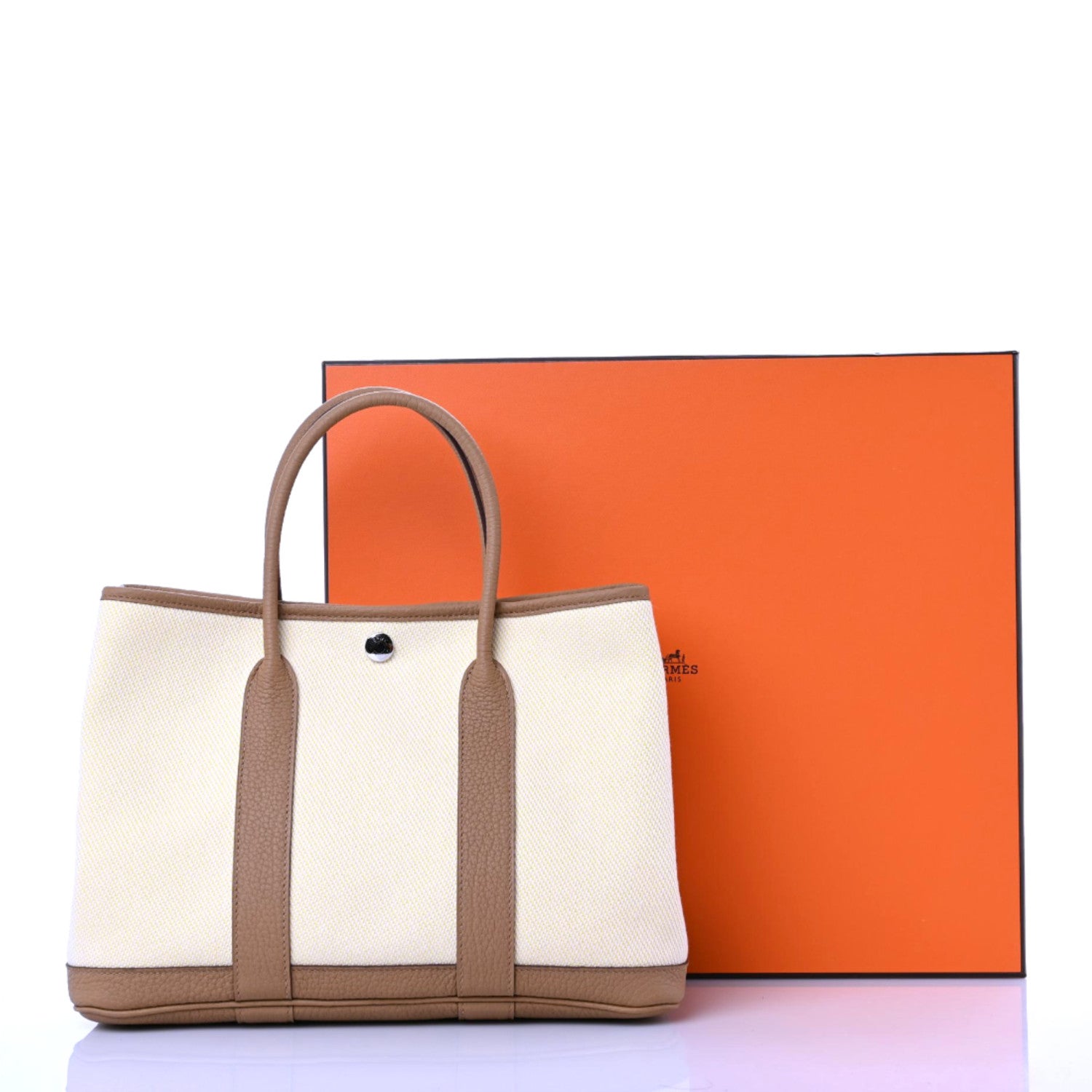 This is an authentic HERMES Twill H Negonda Garden Party 30 TPM Ecru, Jaune Citron and Biscuit. This is a beautiful Hermes tote constructed of beige canvas that is durable and strong. This is reinforced with brown leather including a solid leather base and sides that extend into top rolled handles. There is a snap top closure and the spacious interior is yellow canvas.Follow this item for alerts. Hermes is a registered trademark of Hermes. FASHIONPHILE is not affiliated with Hermes.