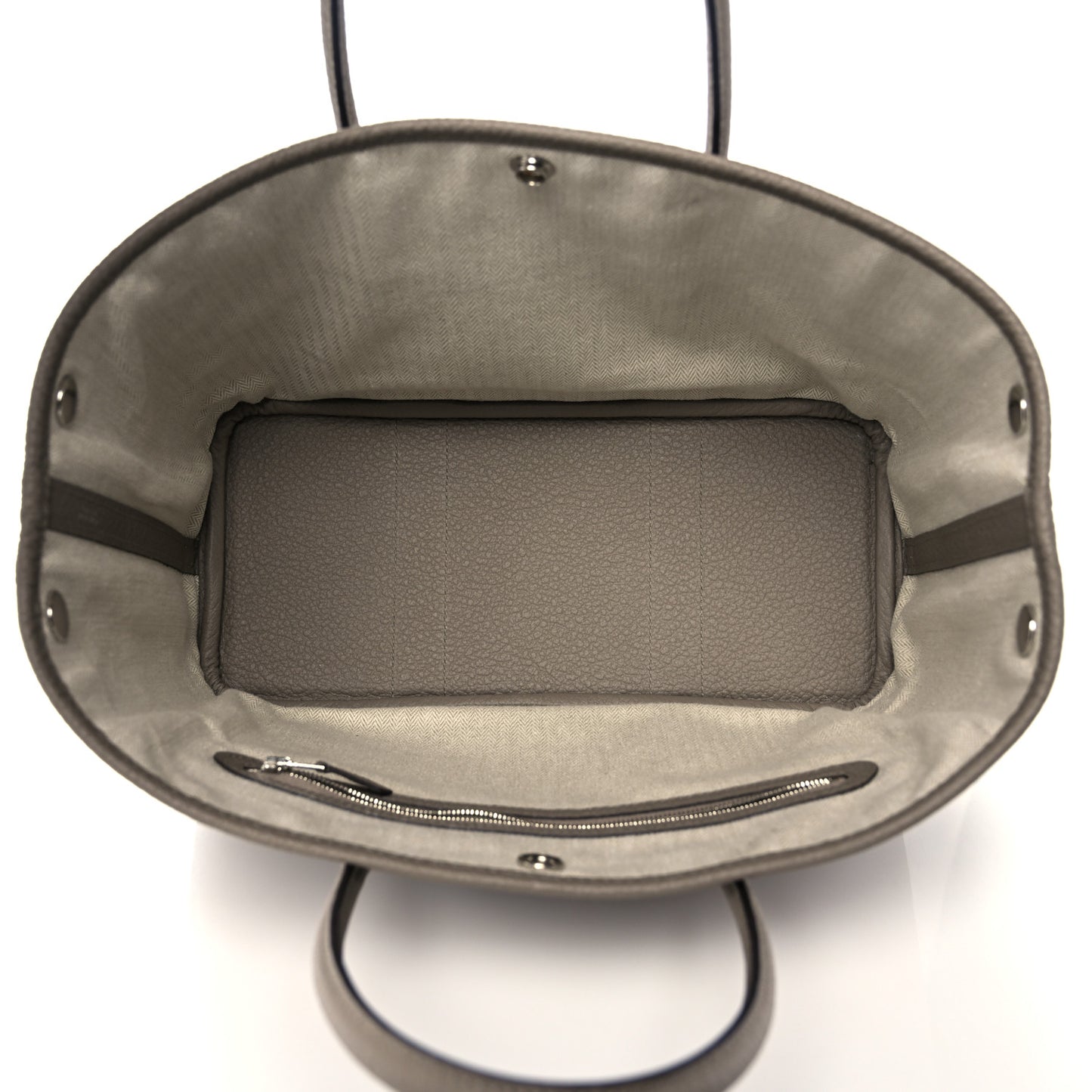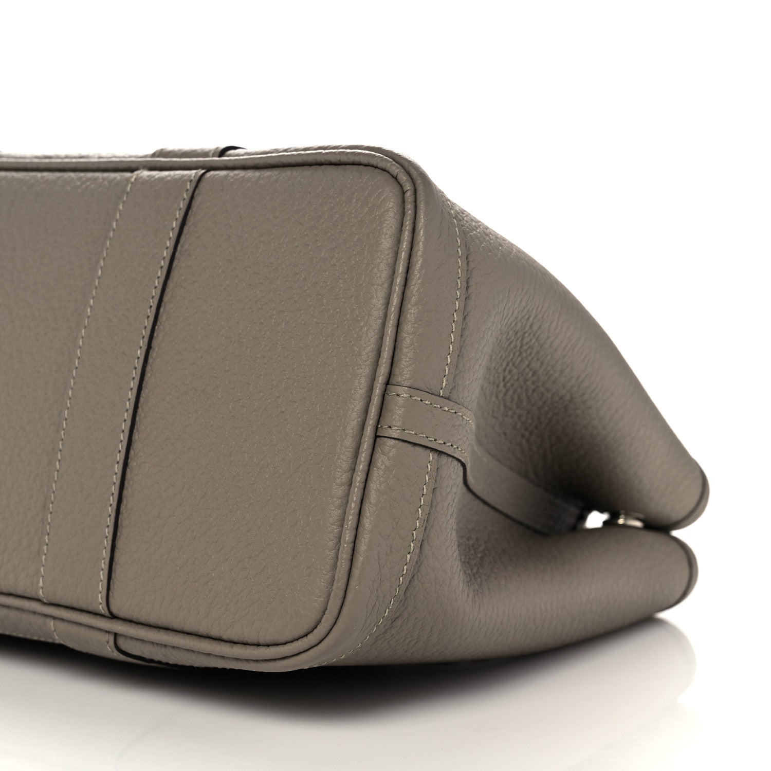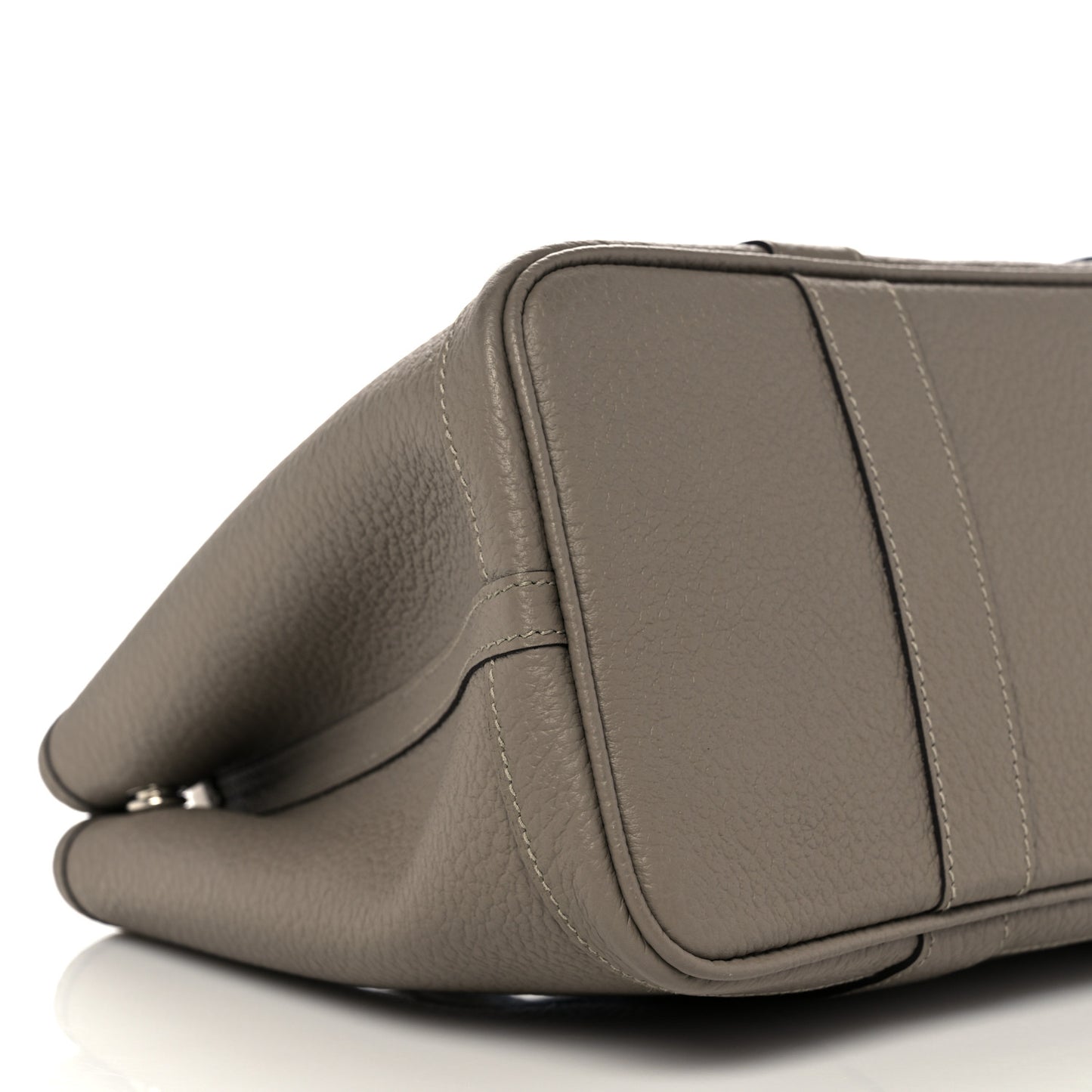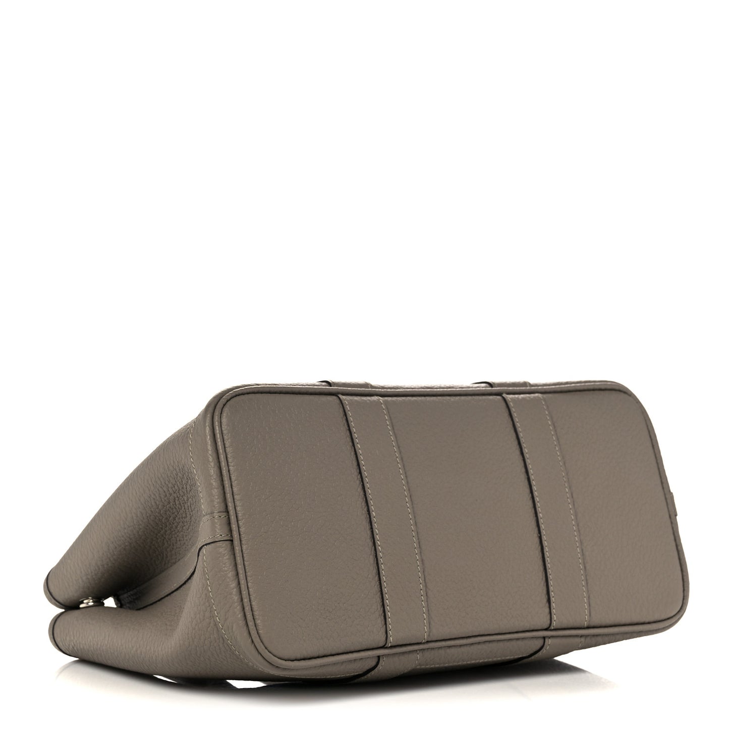 This is an authentic HERMES Vache Country Garden Party 30 TPM in Gris Asphalte. This sophisticated tote is crafted of grained calfskin leather in taupe grey. It features rolled top handles, expandable sides, and palladium hardware. The top opens to a herringbone fabric interior with a zip pocket.Follow this item for alerts. Hermes is a registered trademark of Hermes. FASHIONPHILE is not affiliated with Hermes.