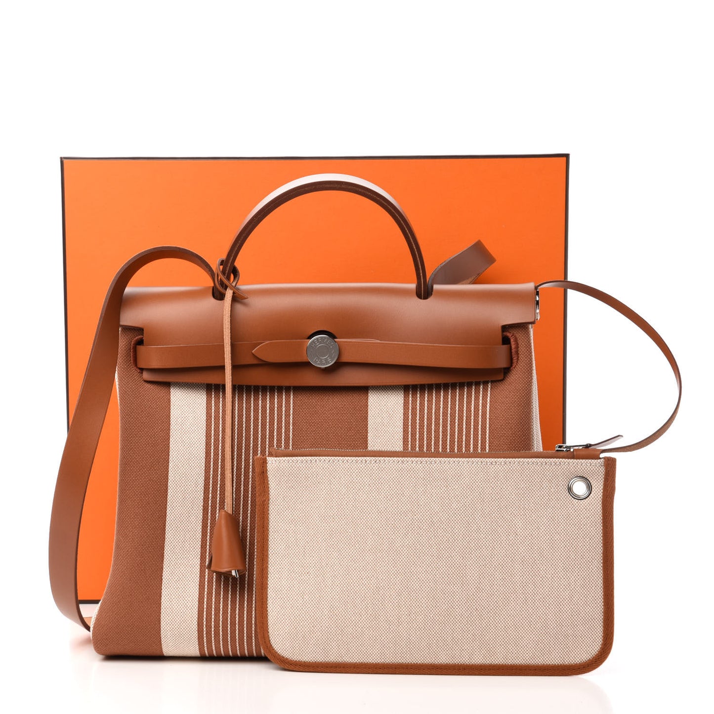 Hermes/ Bags/ Shoulder Bags /Hermes Vache Hunter Toile H Vibration Herbag Zip Retourne 31 PM Fauve Ecru Beige