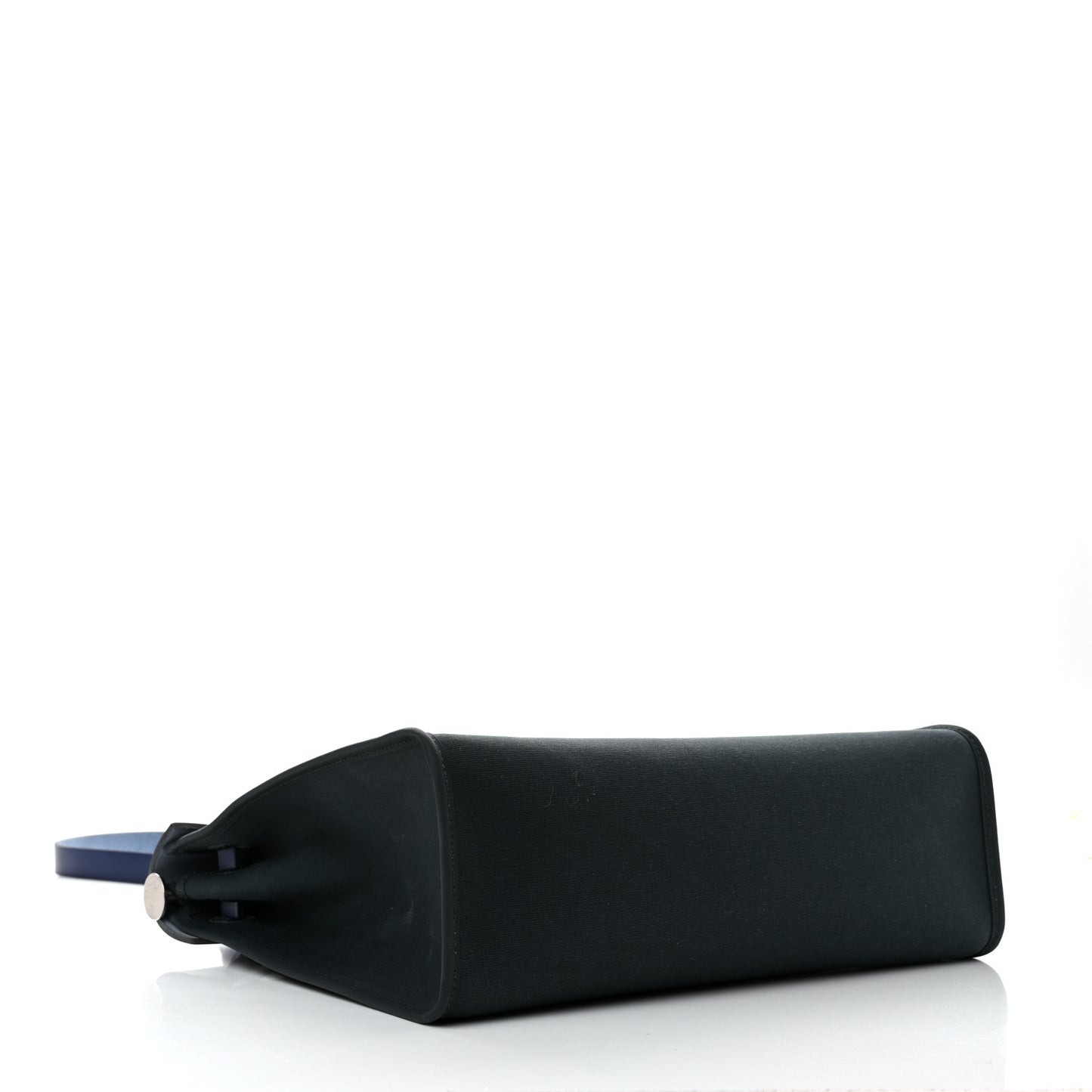 This is an authentic HERMES Vache Hunter Toile Herbag Zip 31 PM in Vert Cypress and Bleu Saphir. This stylish tote is crafted of sturdy blue canvas and blue calfskin leather top crest. The bag features a rear exterior zipper pocket, a leather top handle in blue, shoulder strap, and strap closure with silver palladium hardware. This opens to a matching canvas interior with a removable pouch.Follow this item for alerts. Hermes is a registered trademark of Hermes. FASHIONPHILE is not affiliated with Hermes.