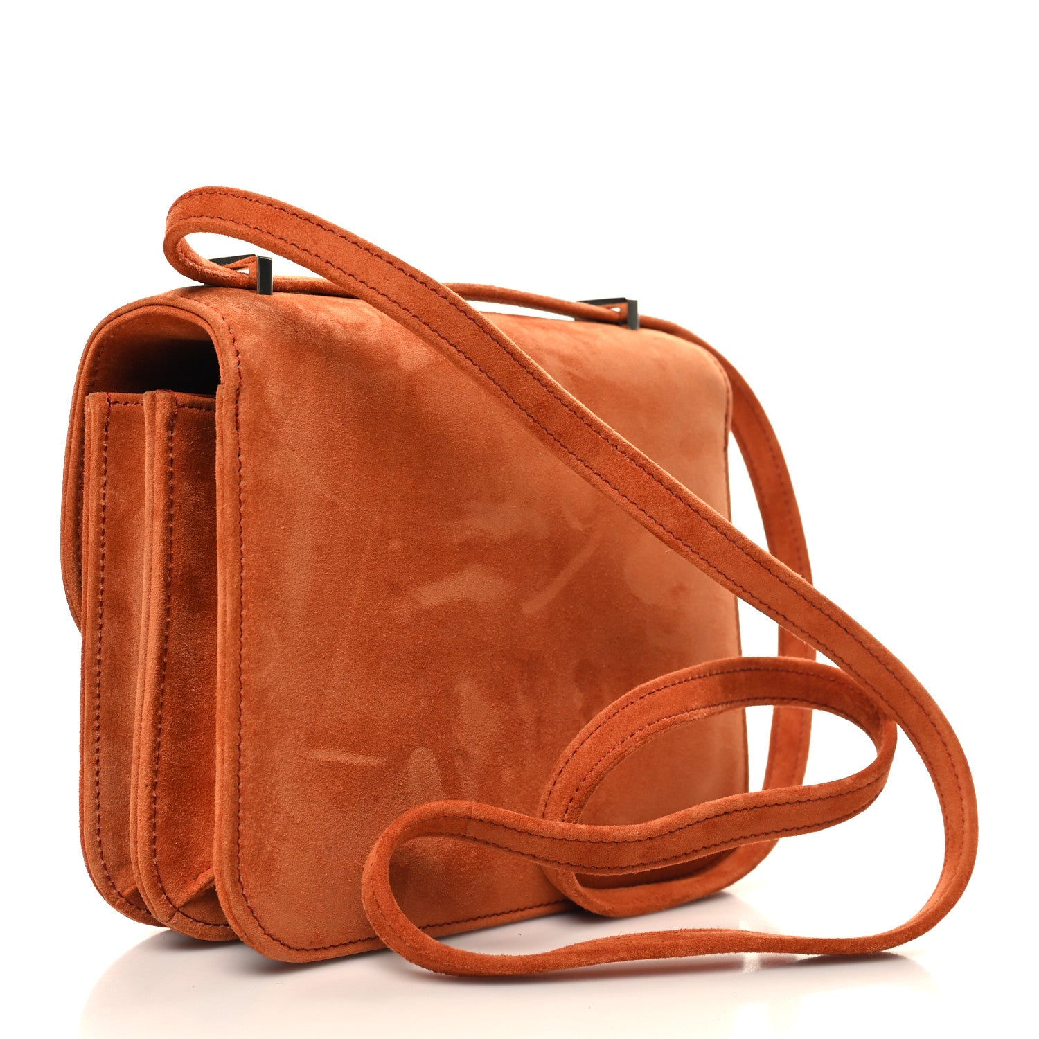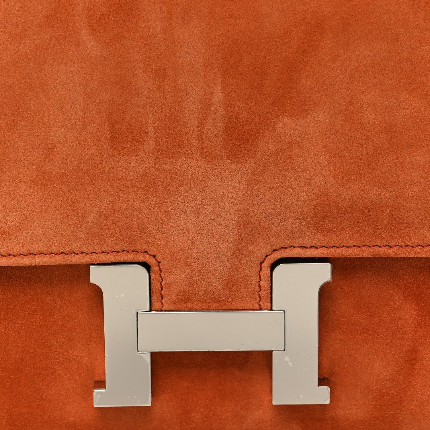This is an authentic HERMES Veau Doblis Constance 18 in Paprika. This classic bag is finely crafted of Veau Doblis suede leather in burnt orange with a matching shoulder strap. The top flap opens with a palladium H clasp to a partitioned leather interior with patch pockets.Follow this item for alerts. Hermes is a registered trademark of Hermes. FASHIONPHILE is not affiliated with Hermes.