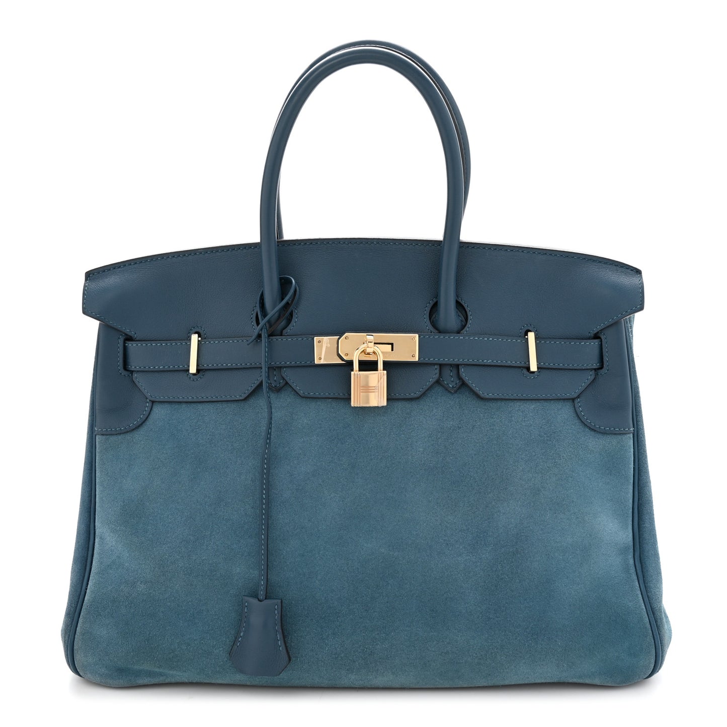 Hermes/ Bags/ Handbags /Hermes Veau Doblis Swift Grizzly Birkin 35 Bleu Tempete