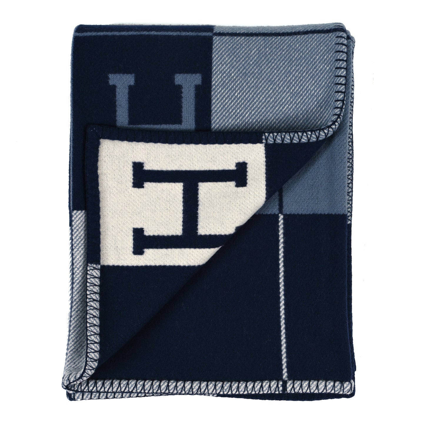 This is an authentic HERMES Wool Cashmere Avalon III Blanket in Caban and Ecru. This stylish blanket is 90% wool and 10% cashmere in blue with iconic Hermes H logos and a stitched border.Follow this item for alerts. Hermes is a registered trademark of Hermes. FASHIONPHILE is not affiliated with Hermes.