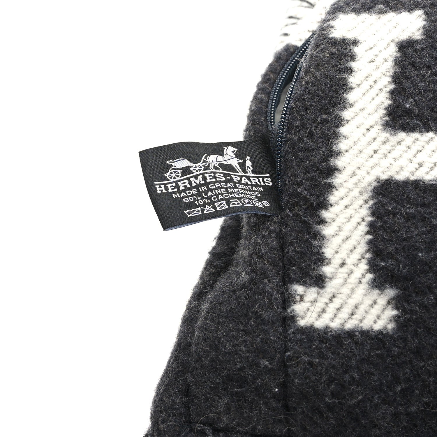 Hermes/ Accessories/ Household Items /Hermes Wool Cashmere Avalon Pillow PM Ecru Gris Fonce