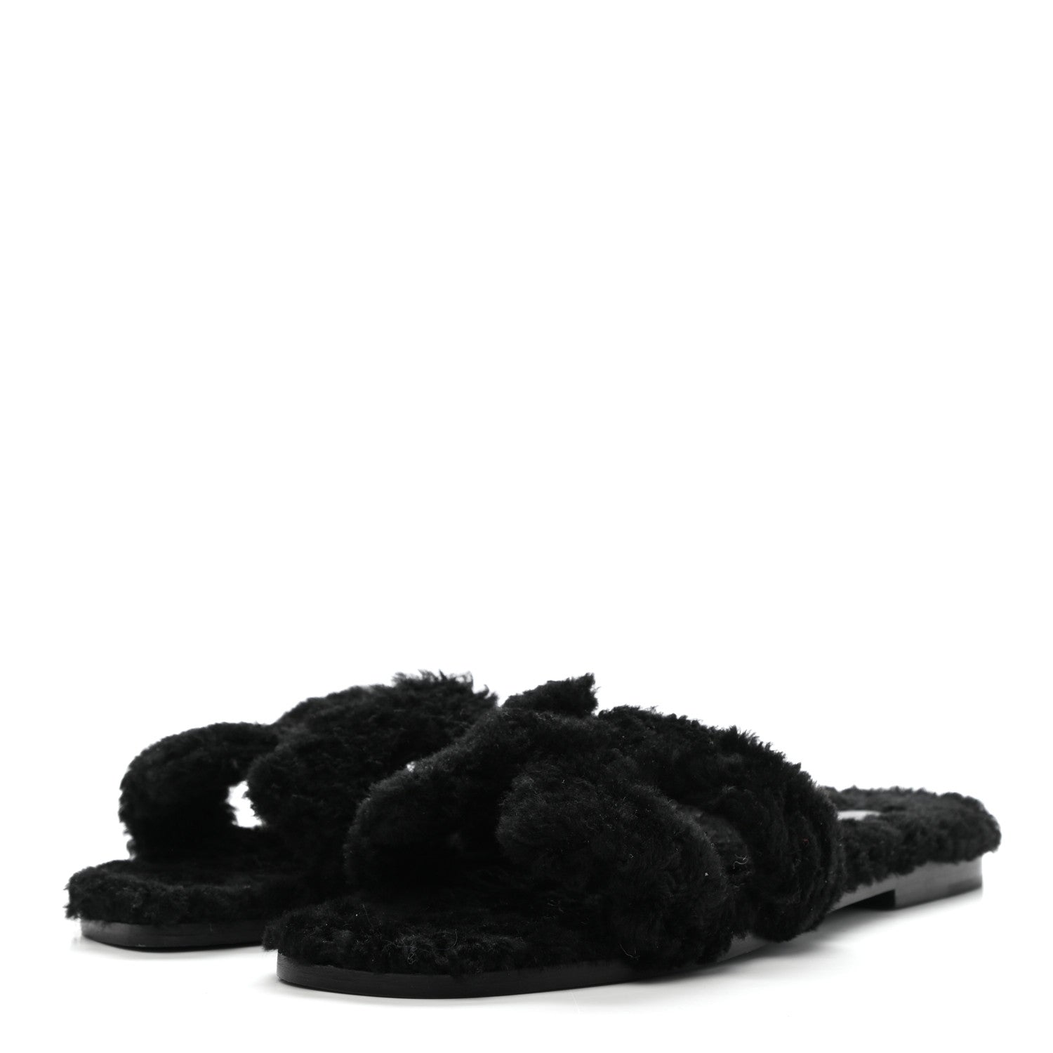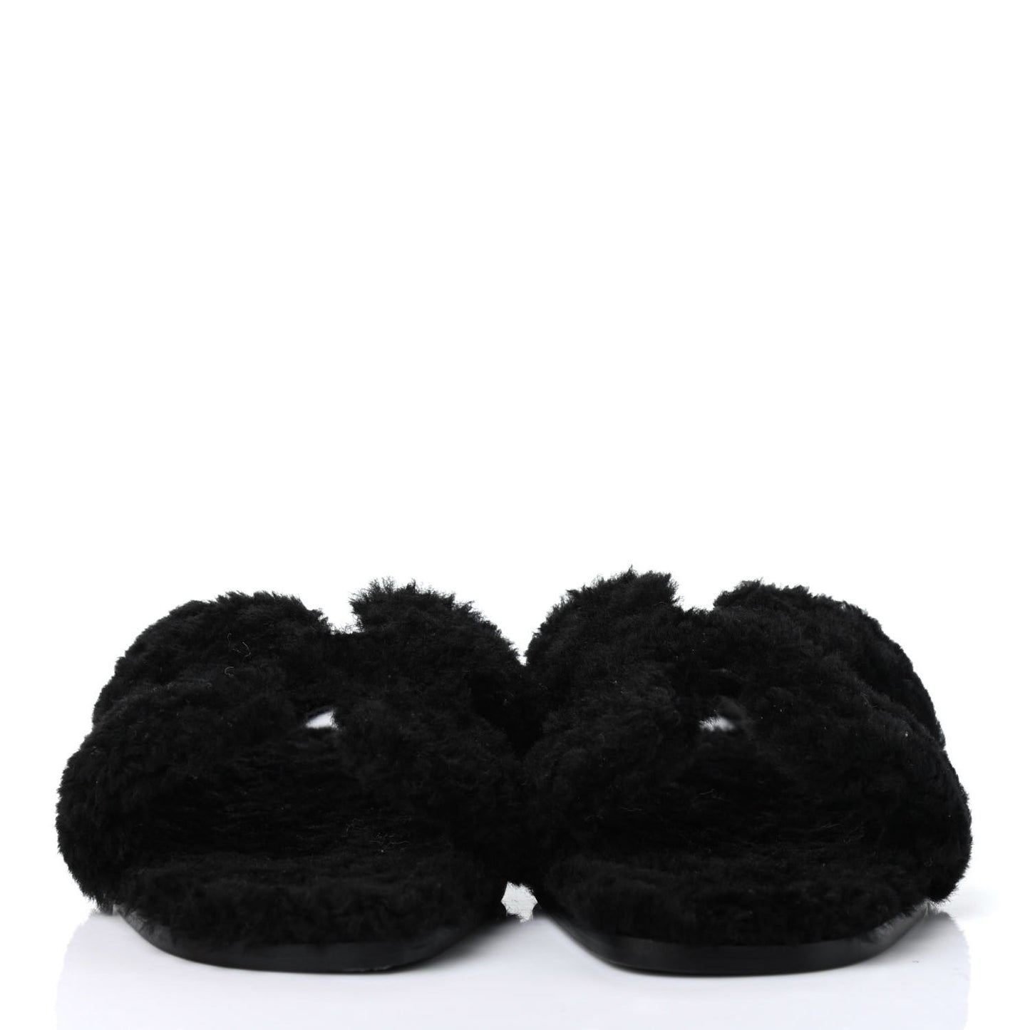 This is an authentic pair of HERMES Woolskin Oran Sandals 38.5 in Black. These stylish slippers are crafted of shearling fur in black. These sandals feature a toe strap with a cross over large Hermes H.Follow this item for alerts. Hermes is a registered trademark of Hermes. FASHIONPHILE is not affiliated with Hermes.