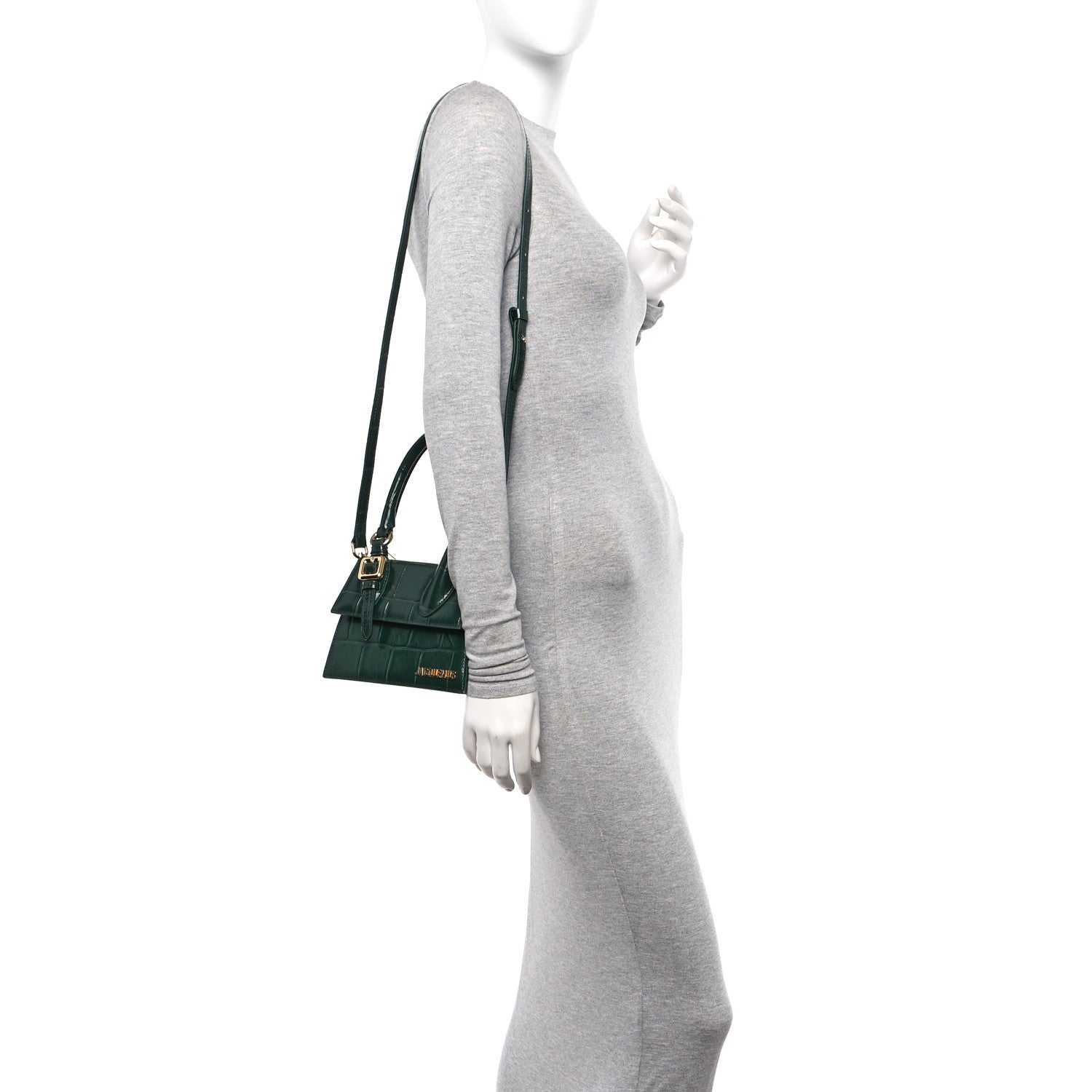 Jacquemus/ Bags/ Crossbody /Jacquemus Calfskin Crocodile Embossed Le Chiquito Moyen Dark Green