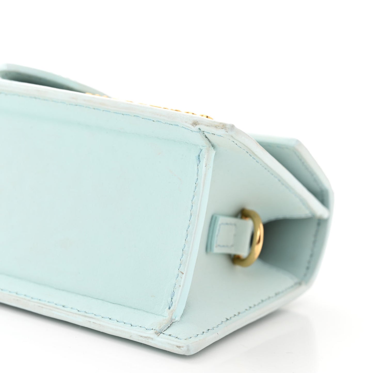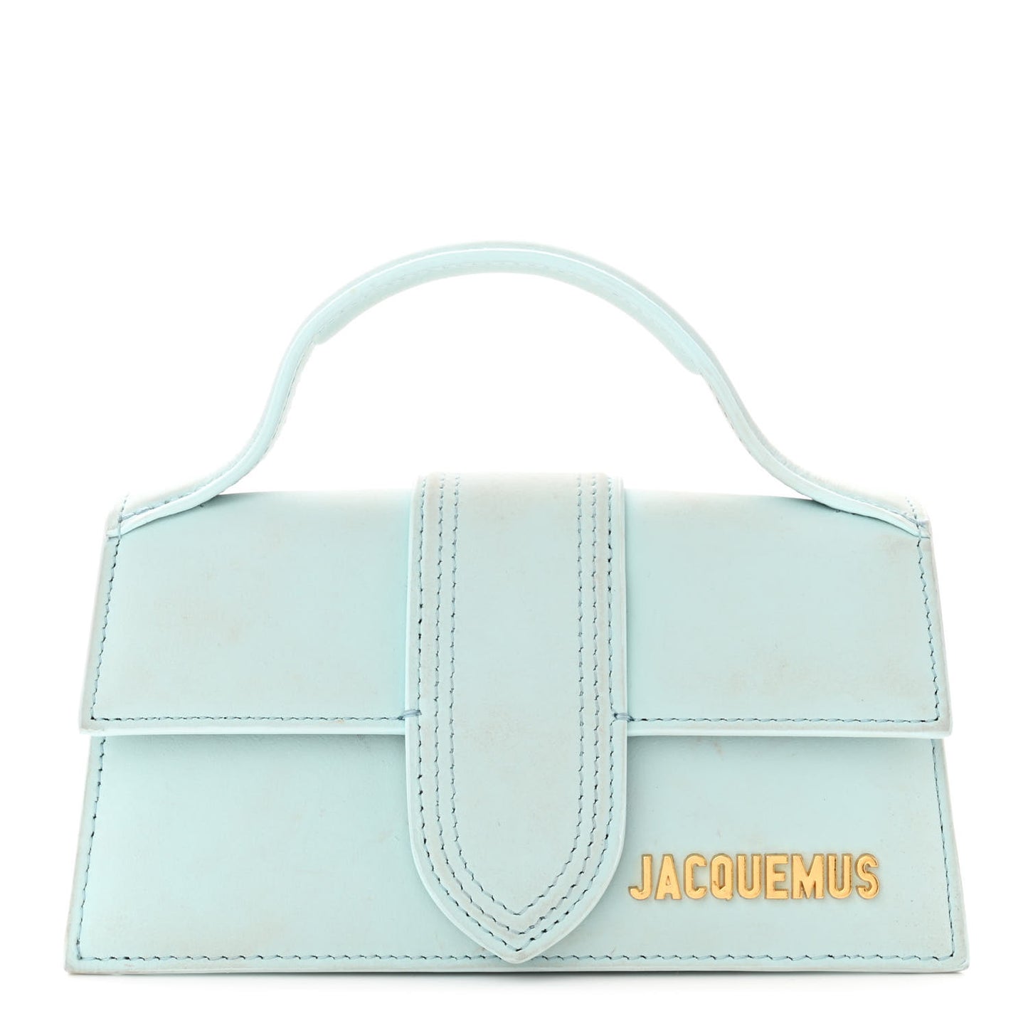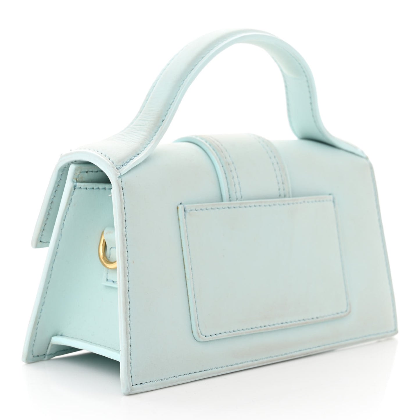 This is an authentic JACQUEMUS Smooth Calfskin Le Bambino in Pale Blue. This super-chic shoulder bag is crafted of calfskin leather in light blue. The bag features a rolled top handle and gold hardware. The front flap opens to a beige fabric interior.Follow this item for alerts. Jacquemus is a registered trademark of Jacquemus. FASHIONPHILE is not affiliated with Jacquemus.