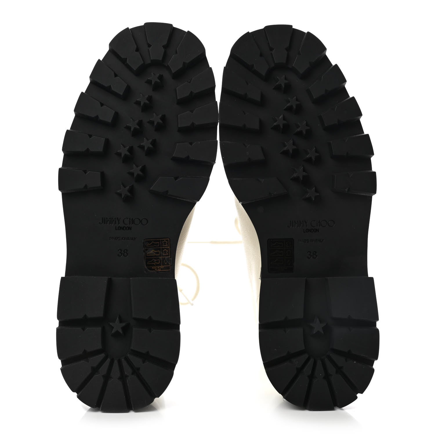This is a stylish pair of JIMMY CHOO Calfskin Crystal Embellished Colby Combat Boots in size 38 in Latte. These boots are crafted of calfskin leather. They feature a 2-inch rubber heel, white lace-ups, and and crystals embellished around the welt.Follow this item for alerts. Jimmy Choo is a registered trademark of Jimmy Choo. FASHIONPHILE is not affiliated with Jimmy Choo.