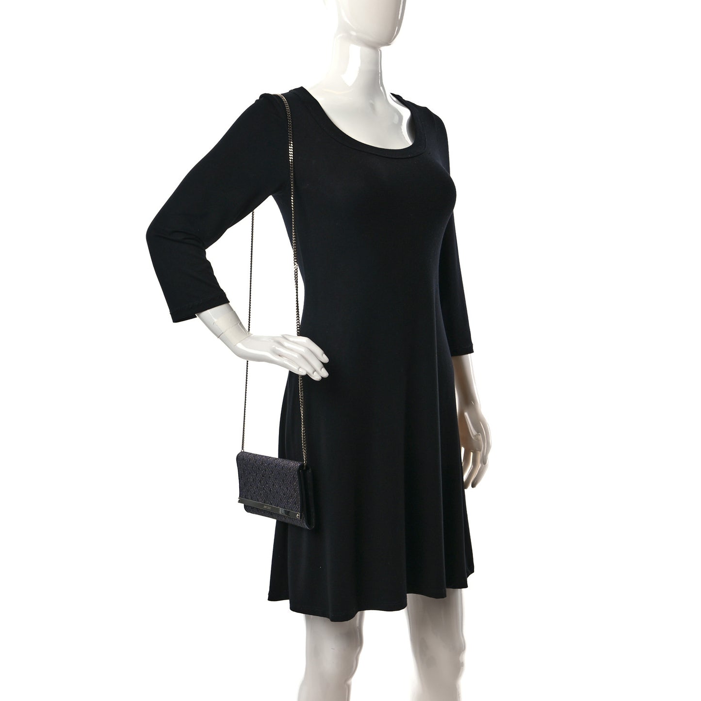 This is an authentic JIMMY CHOO Glitter Milla Wallet on Chain in Black Anthracite. This chic evening bag is crafted of stylish silver and black with silver glitter has an optional silver chain link shoulder strap and metal bar at the front flap. The flap opens to a black fabric and black leather interior with card slots and a zipper pocket.Follow this item for alerts. Jimmy Choo is a registered trademark of Jimmy Choo. FASHIONPHILE is not affiliated with Jimmy Choo.