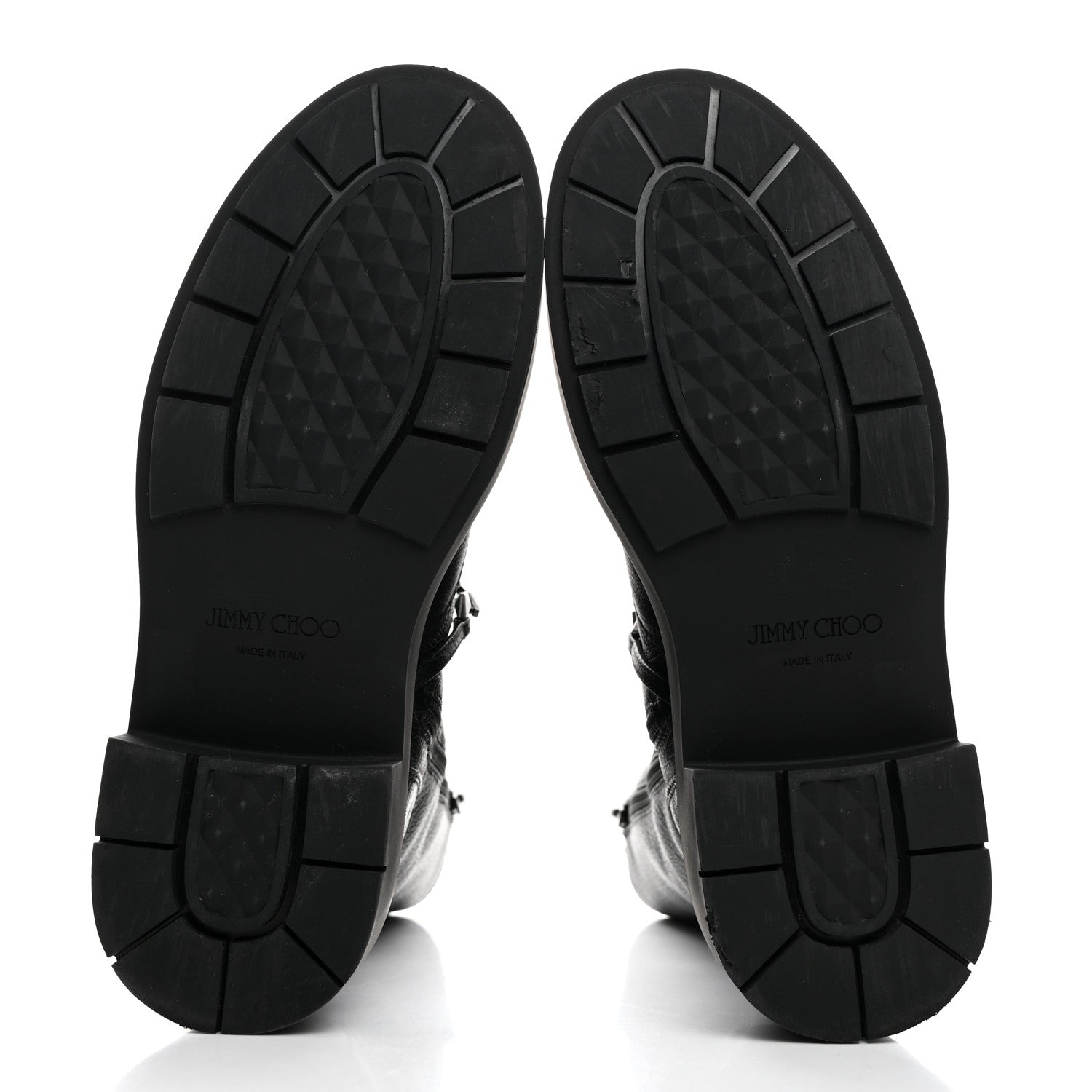 Jimmy Choo/ Accessories/ Shoes /Jimmy Choo Grained Calfskin Nari Diamond Chain Flat Boots 39 Black Anthracite