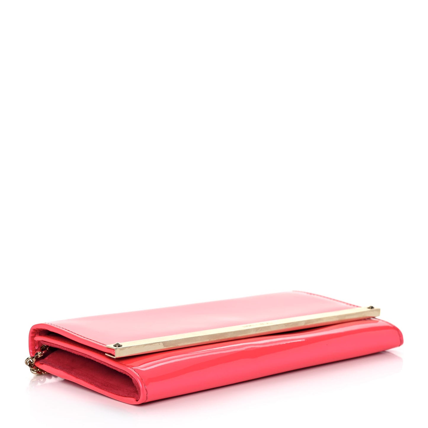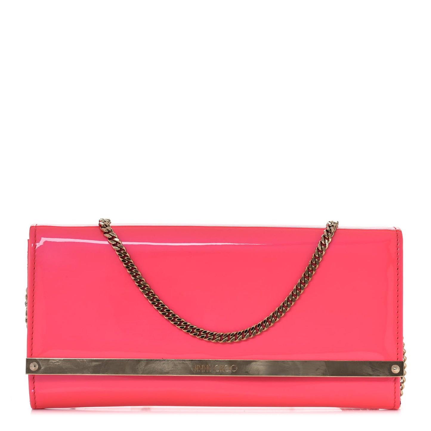 This is an authentic JIMMY CHOO Patent Milla Wallet on Chain. This chic evening bag is crafted of stylish patent leather in neon pink. The bag features a crossbody gold chain strap and a gold bar along the flap. This opens to a leather and fabric interior with a card slot panel and a zipper compartment.Follow this item for alerts. Jimmy Choo is a registered trademark of Jimmy Choo. FASHIONPHILE is not affiliated with Jimmy Choo.
