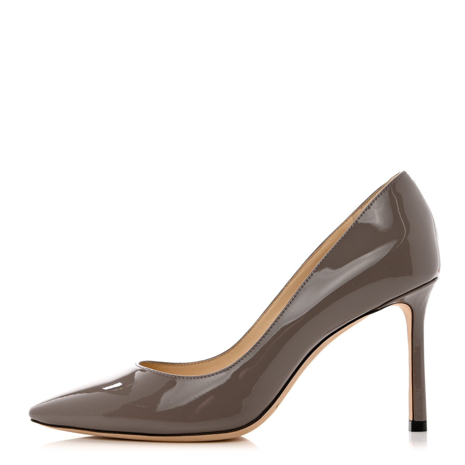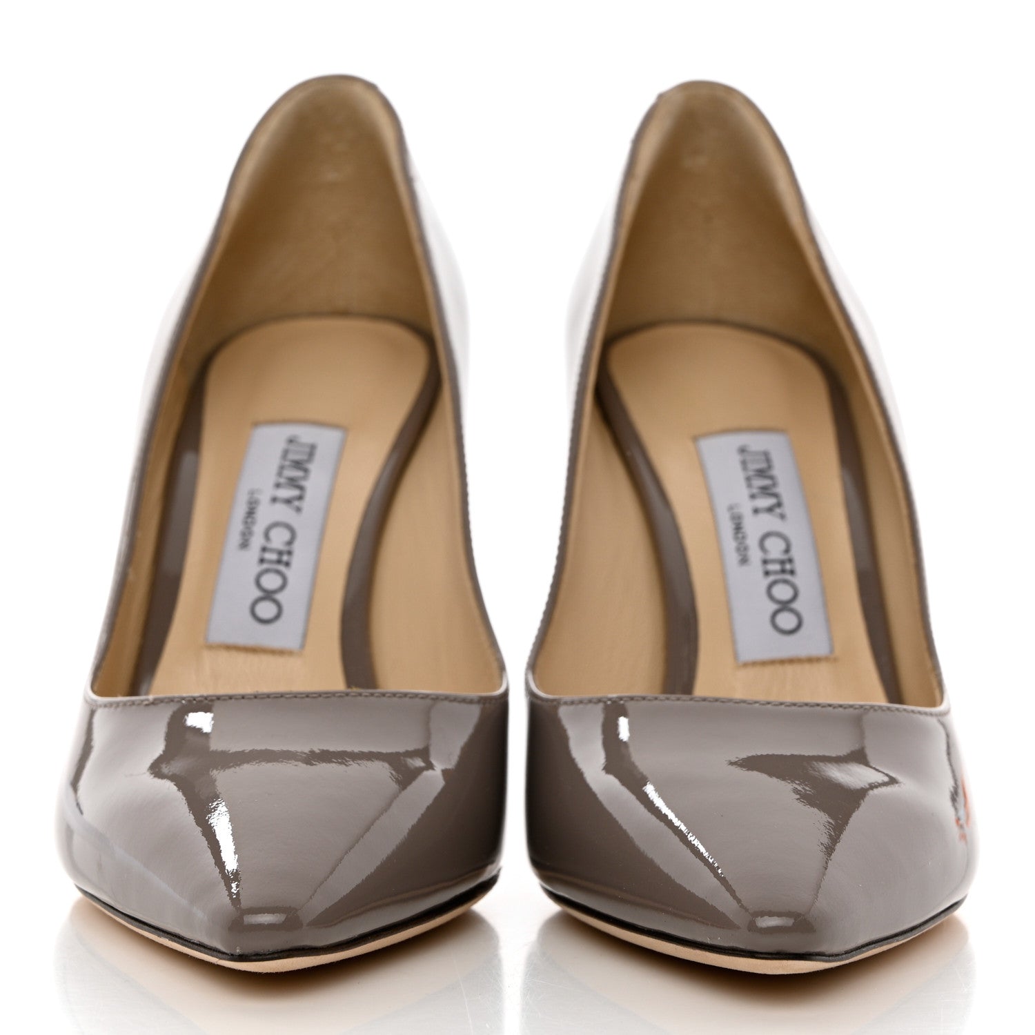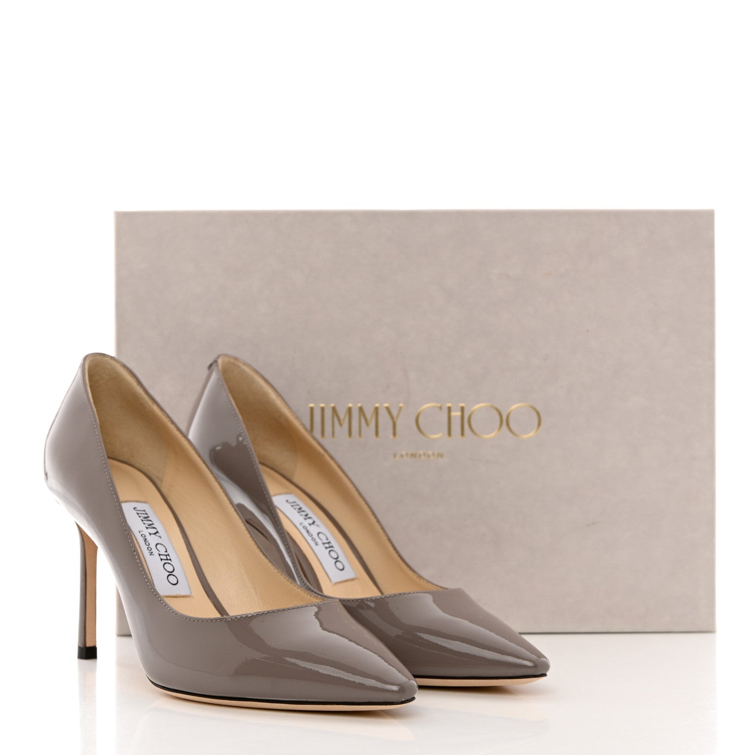 This is an authentic JIMMY CHOO Patent Romy 85 Pumps 36 in Opal Grey. These stylish heels are structured of patent leather. They feature a pointed toe and a sharp 3.5 inch stiletto heel.Follow this item for alerts. Jimmy Choo is a registered trademark of Jimmy Choo. FASHIONPHILE is not affiliated with Jimmy Choo.