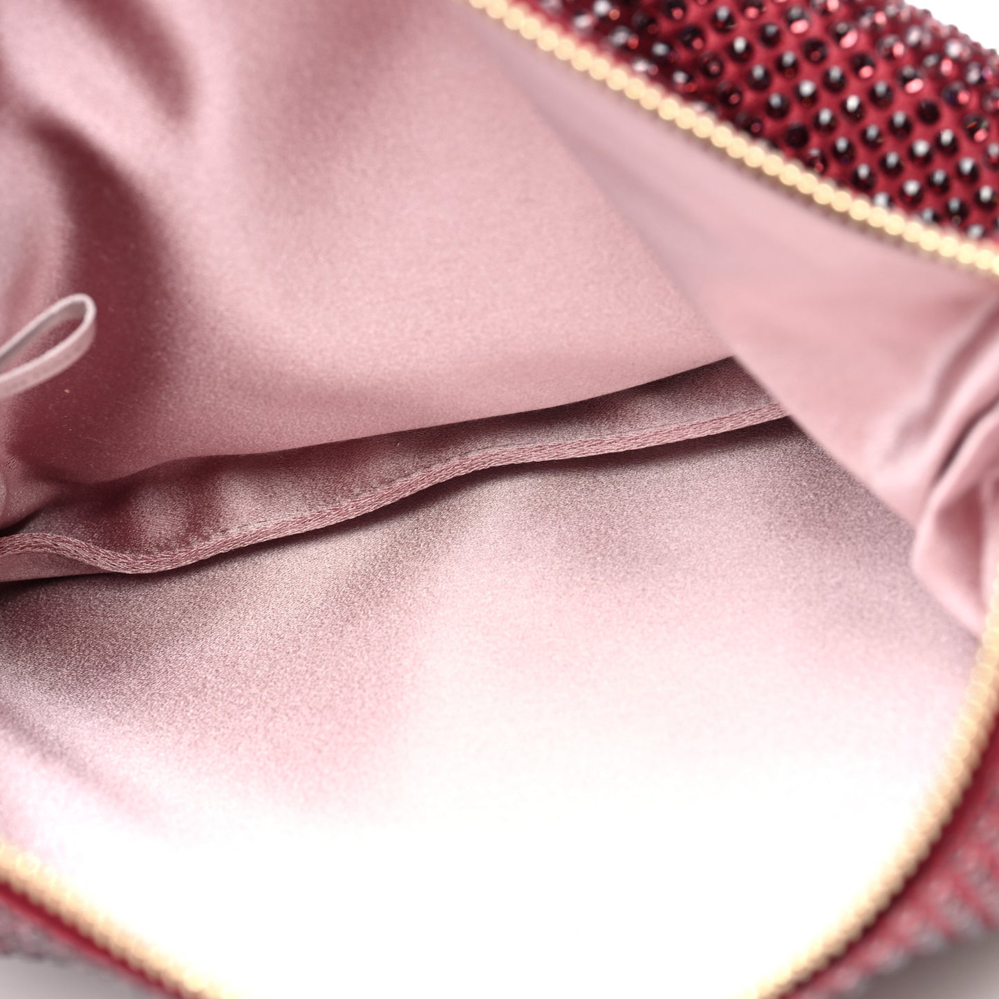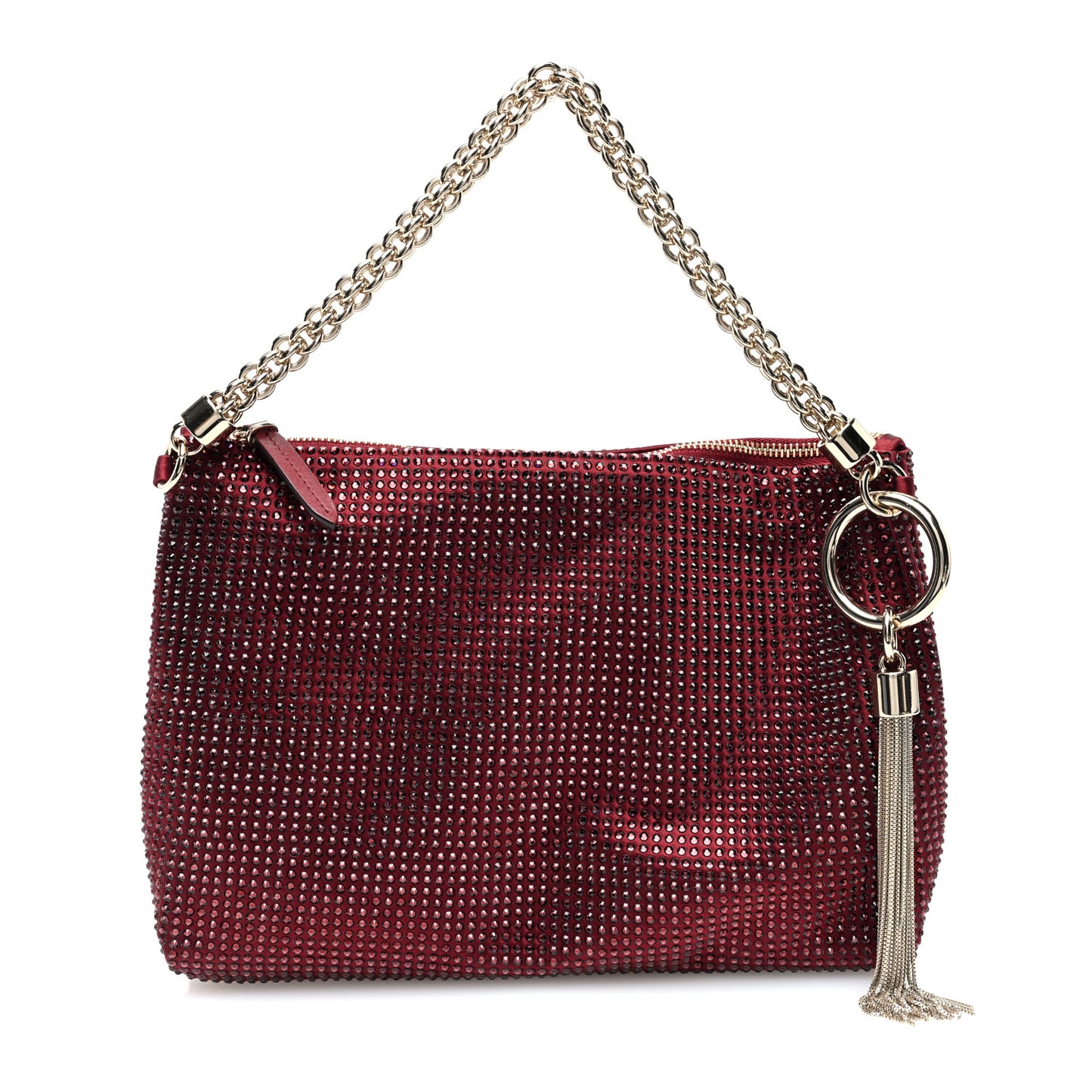 This is an authentic JIMMY CHOO Satin Crystal Callie Tasseled Clutch in Wine. This stylish clutch is crafted of dark red crystals. The clutch features a gold chain wrist strap that connects to the zipper and opens to a pink satin interior.Follow this item for alerts. Jimmy Choo is a registered trademark of Jimmy Choo. FASHIONPHILE is not affiliated with Jimmy Choo.