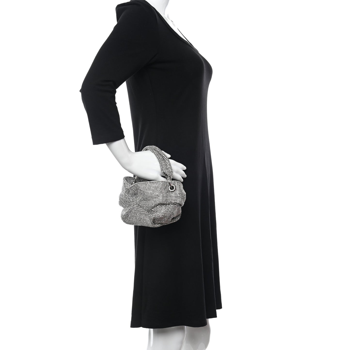 This is an authentic JIMMY CHOO Satin Crystal Embellished Bonny Shoulder Bag in Silver. This chic bag is crafted with a crystal embellishment. The bag features a drawstring opening, crystal encrusted top handle, and a silver chain shoulder strap. The top opens to a silver satin interior.Follow this item for alerts. Jimmy Choo is a registered trademark of Jimmy Choo. FASHIONPHILE is not affiliated with Jimmy Choo.
