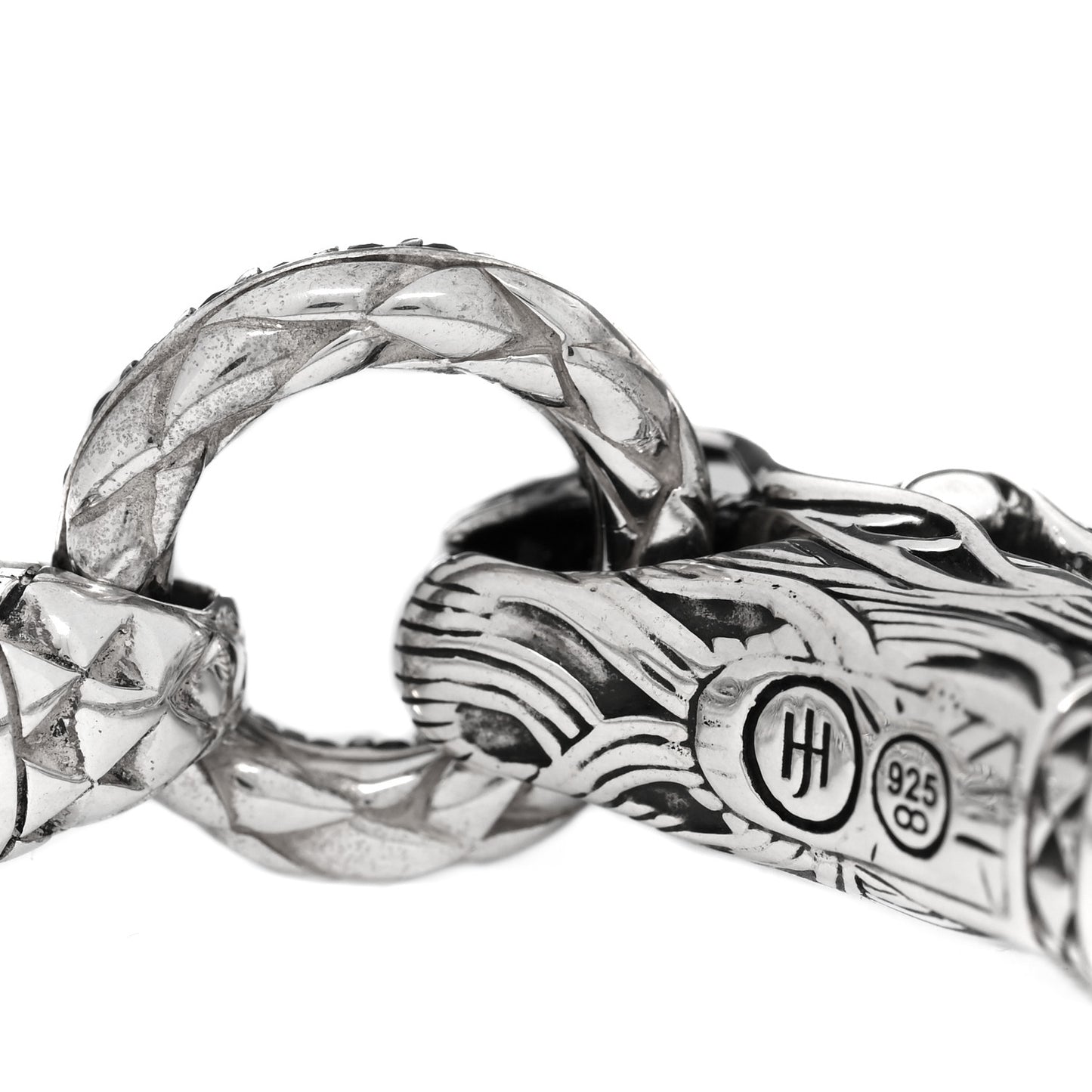 This is an authentic JJOHN HARDY Sterling Silver Black Sapphire Legends Naga Station Bracelet. The bracelet is crafted of sterling silver and features a woven flexible band with a dragon head and black sapphire encrusted ring closure.Follow this item for alerts. John Hardy is a registered trademark of John Hardy. FASHIONPHILE is not affiliated with John Hardy.
