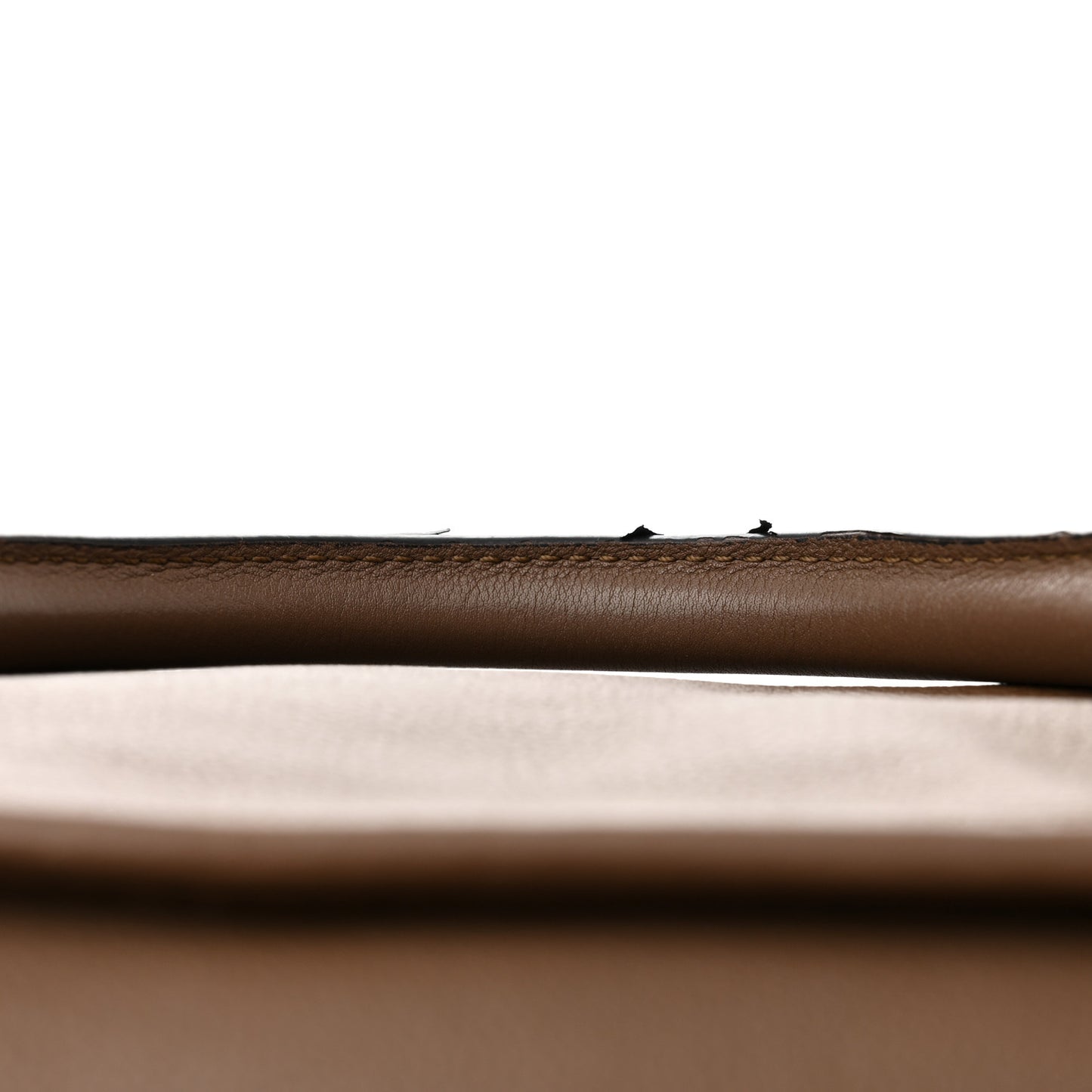 This is an authentic LOEWE Calfskin Amazona 36 in Mink. This chic rectangular handbag is finely crafted of soft, supple calfskin leather. The bag features a wrap-around zipper, corner trim, and gold hardware. The top zipper opens to a roomy, brown leather interior with zipper and patch pockets.Follow this item for alerts. Loewe is a registered trademark of Loewe. FASHIONPHILE is not affiliated with Loewe.