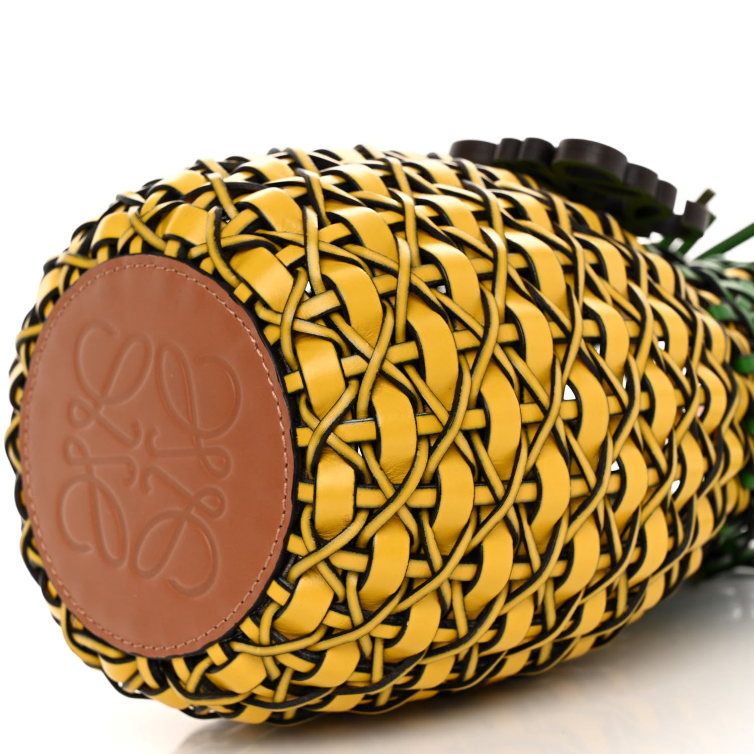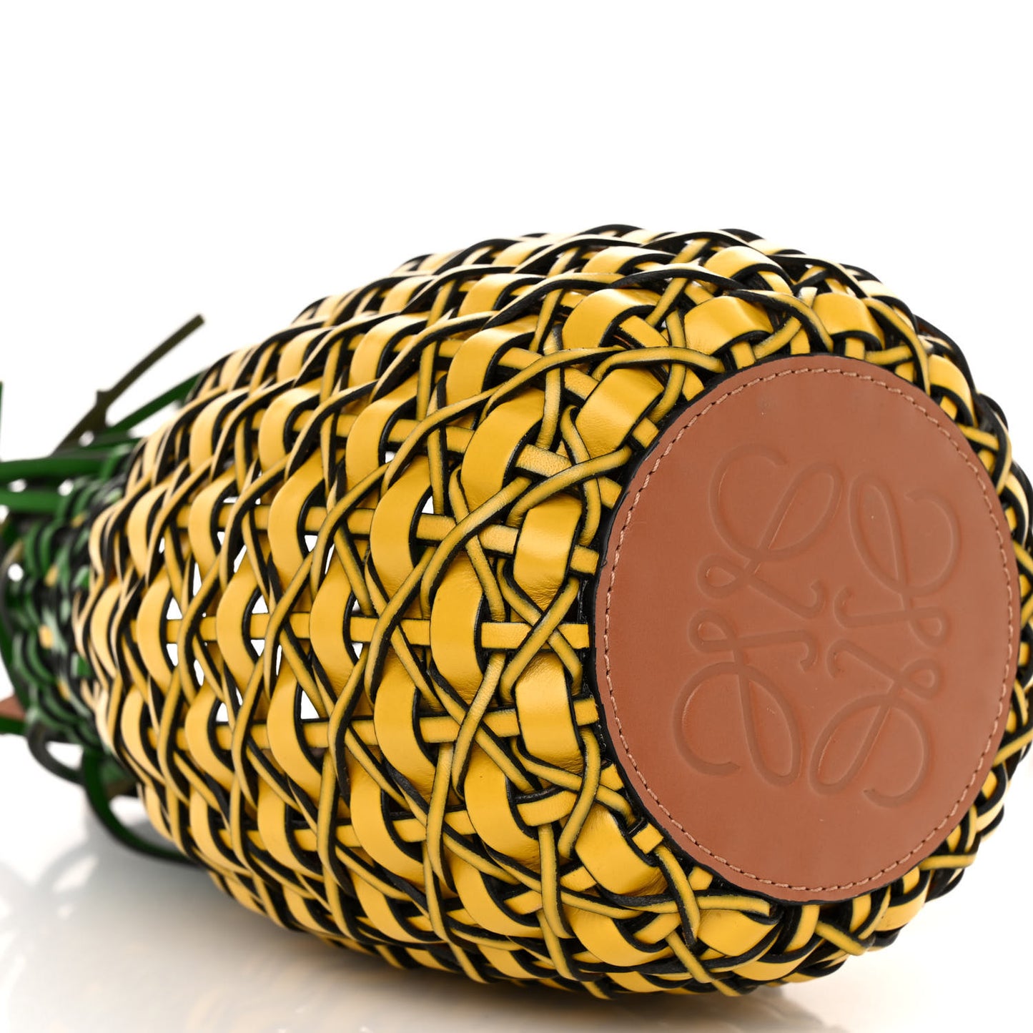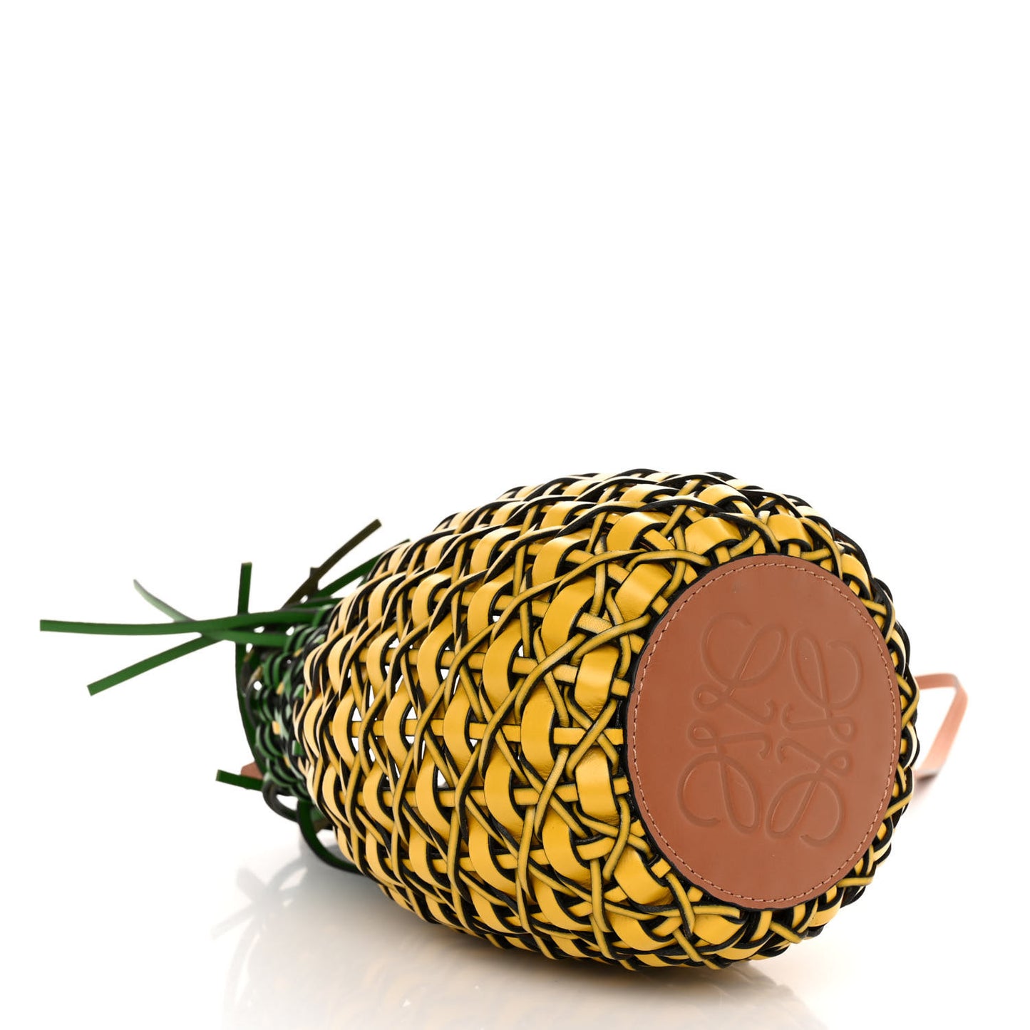 This is an authentic LOEWE Calfskin Fringe Woven Pineapple Bucket Bag in Yellow and Green. This stunning bag is crafted of smooth woven calfskin leather in yellow and green. The shoulder bag features a leather shoulder strap and silver hardware. The top opens to a unlined interior.Follow this item for alerts. Loewe is a registered trademark of Loewe. FASHIONPHILE is not affiliated with Loewe.