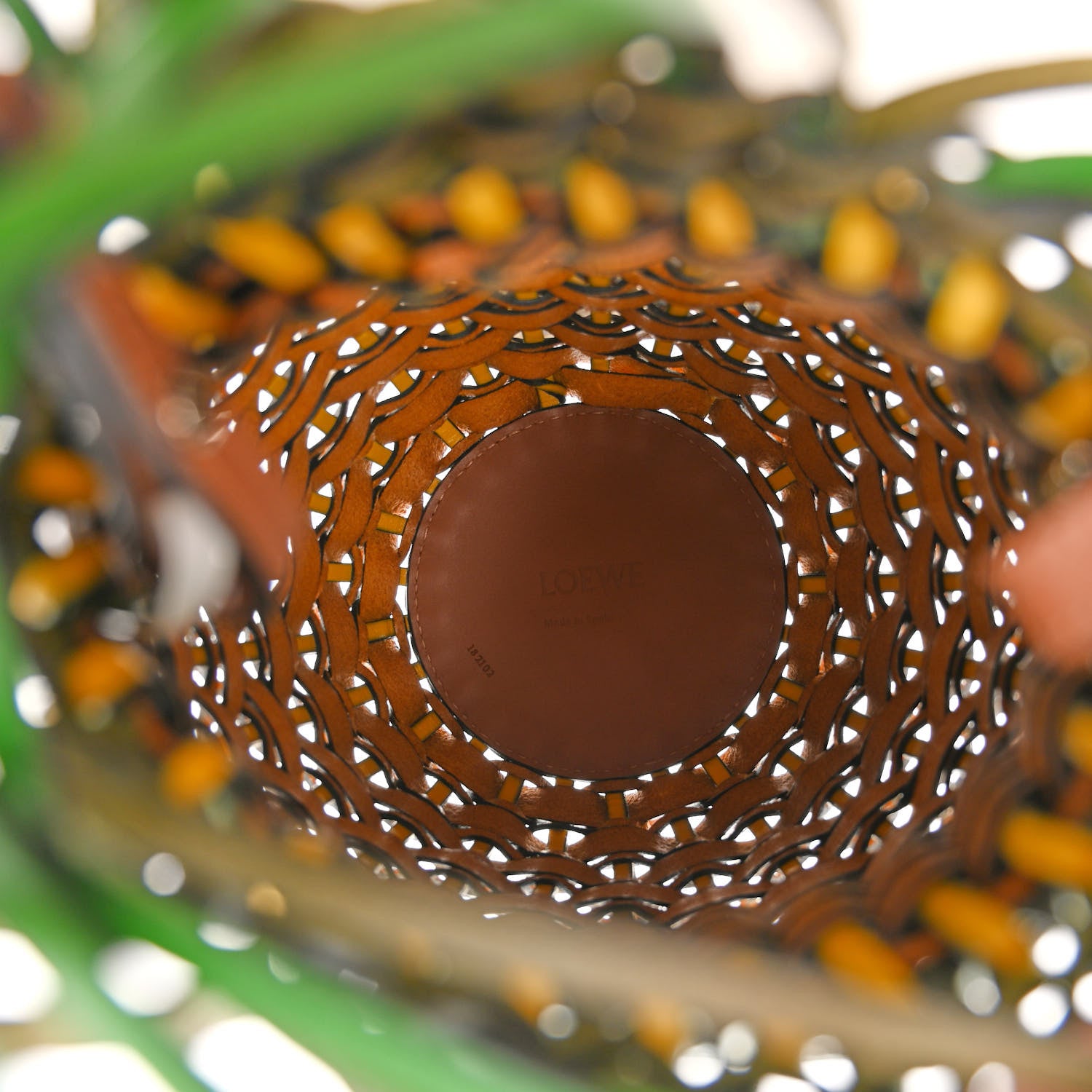 Loewe/ Bags/ Shoulder Bags /Loewe Calfskin Fringe Woven Pineapple Bucket Bag Yellow Green